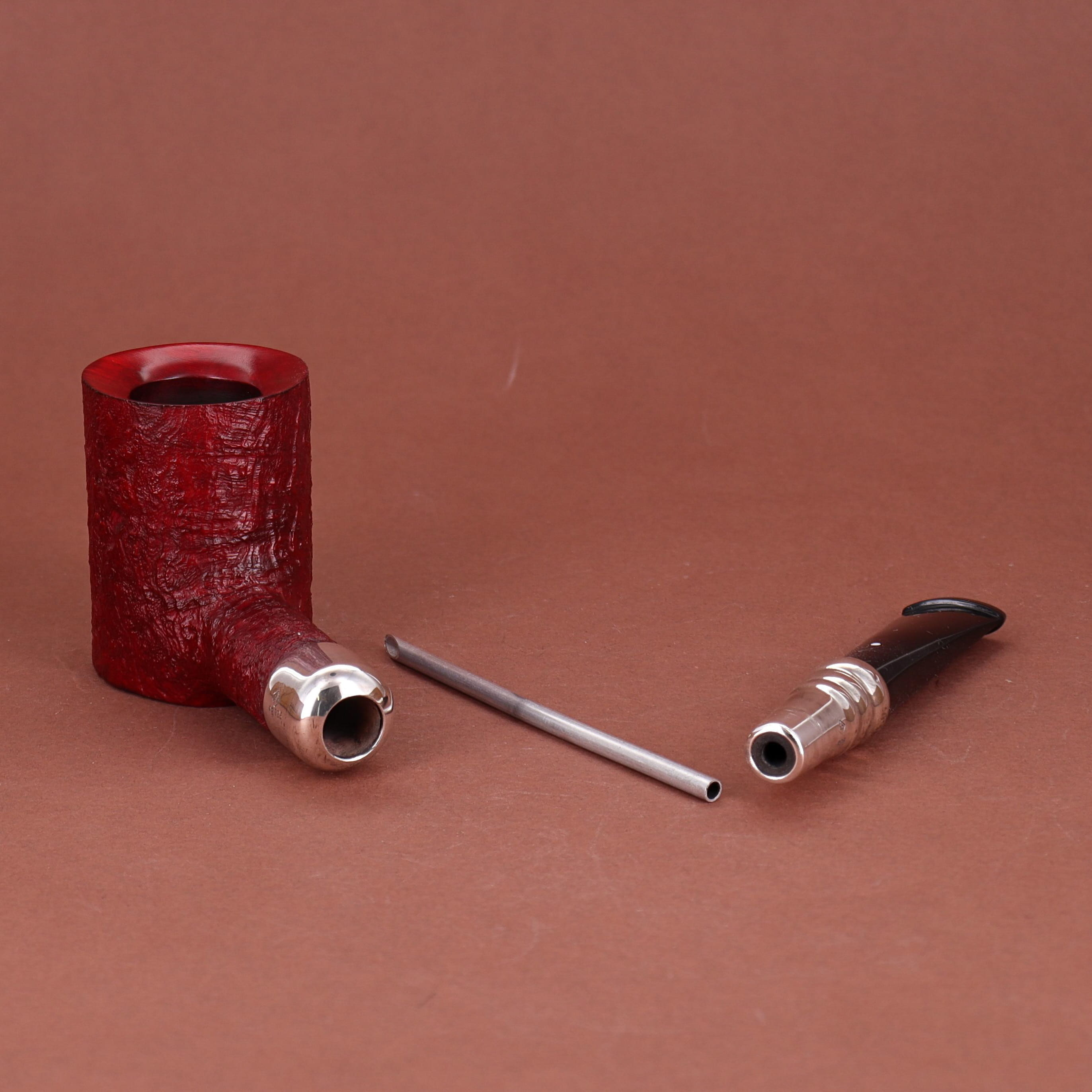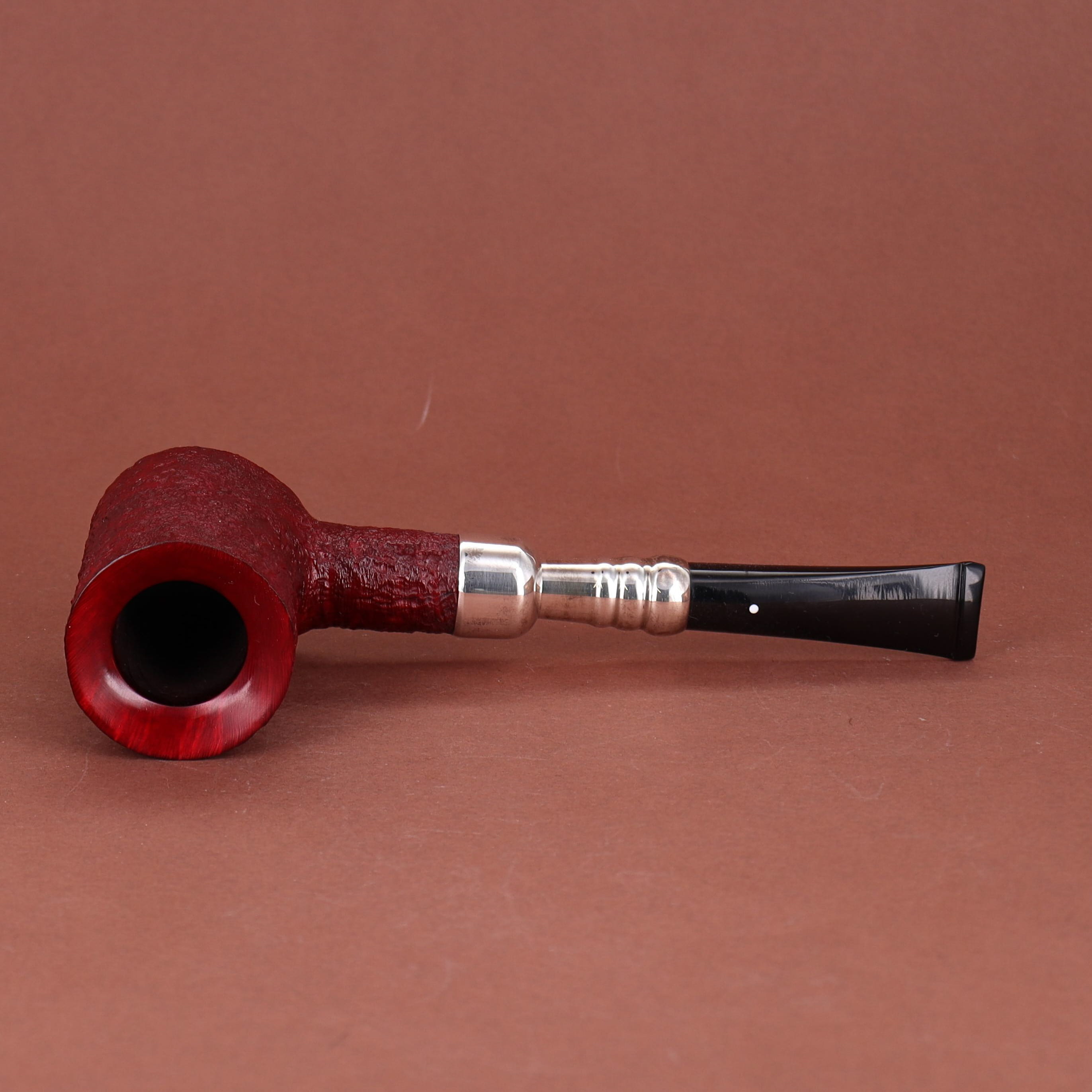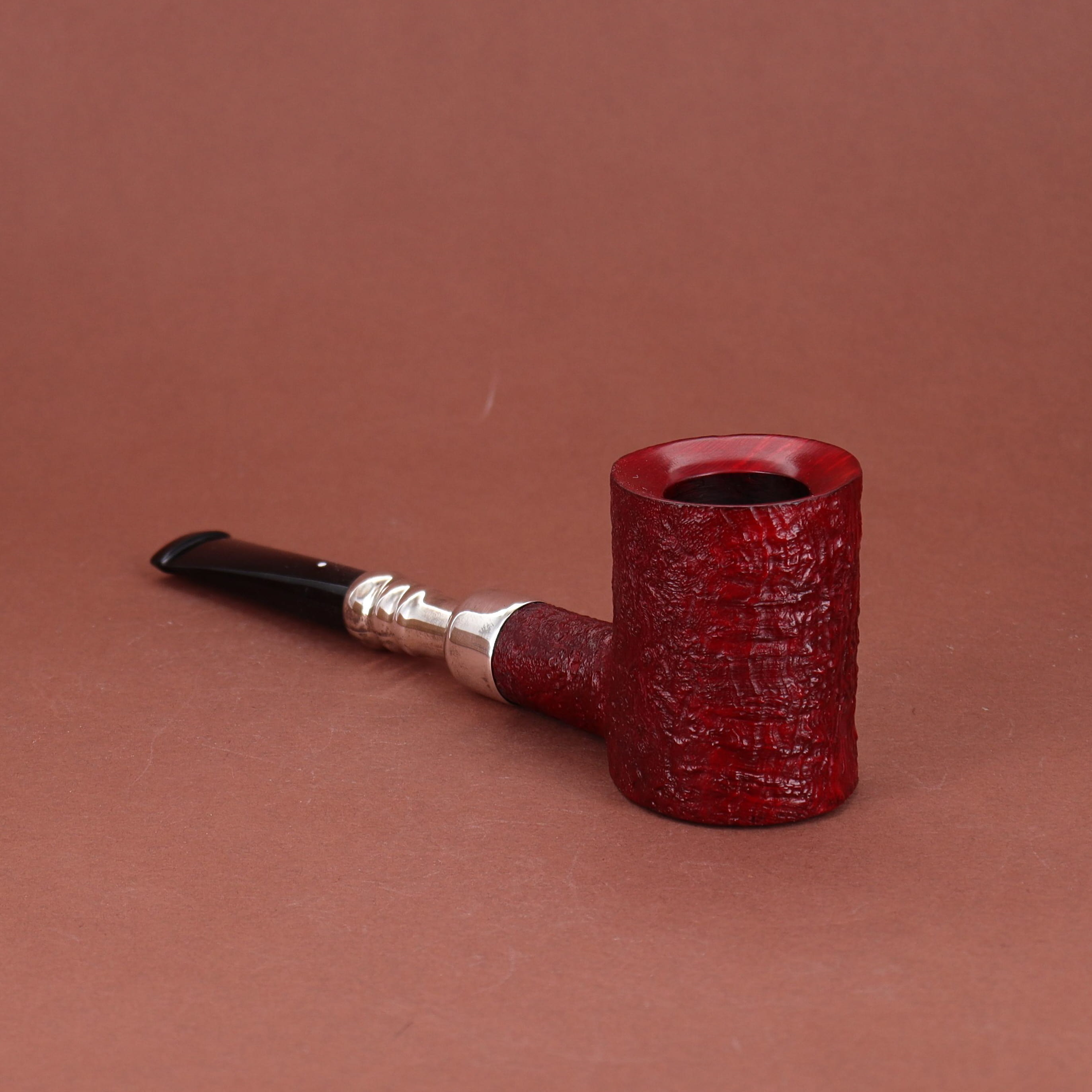 Pipa Dunhill 319 RUBYBARK 5122, finissaggio sabbiato rosso, shape stand up poker con vera in argento, bocchino in ebanite spigot in argento. Made in England. Realizzata nel 2025. In Scatola Originale con sacchetto. Perfetta, nuova, mai fumata.