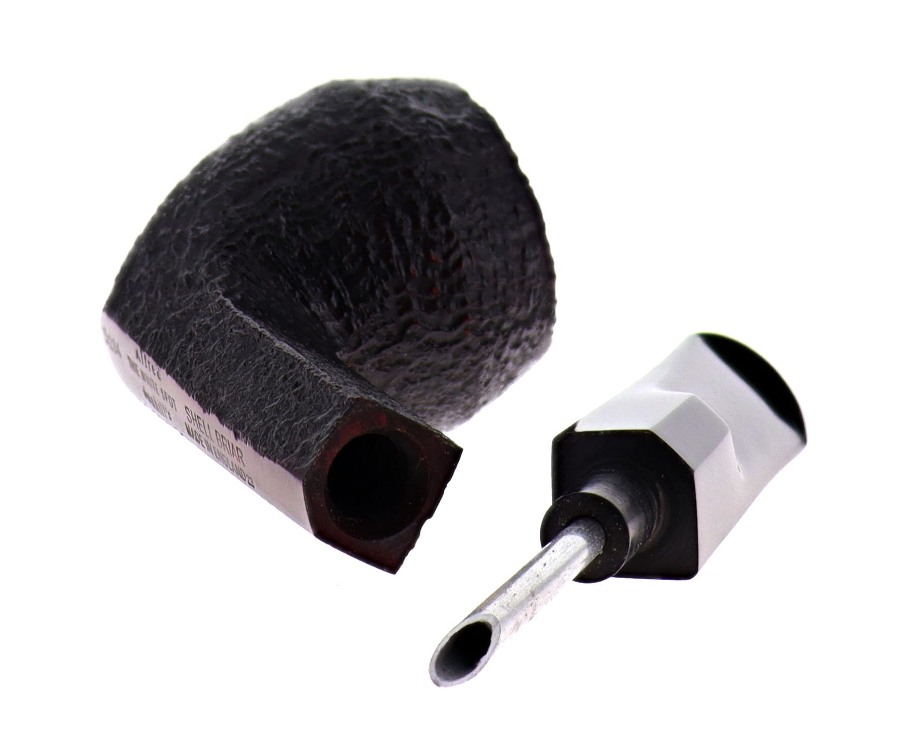 Pipa Dunhill 204 SHELL BRIAR 5204, finissaggio sabbiato nero, shape straight bulldog, bocchino in ebanite. Made in England. Realizzata nel 2023. In Scatola Originale con sacchetto. Perfetta, nuova, mai fumata.
