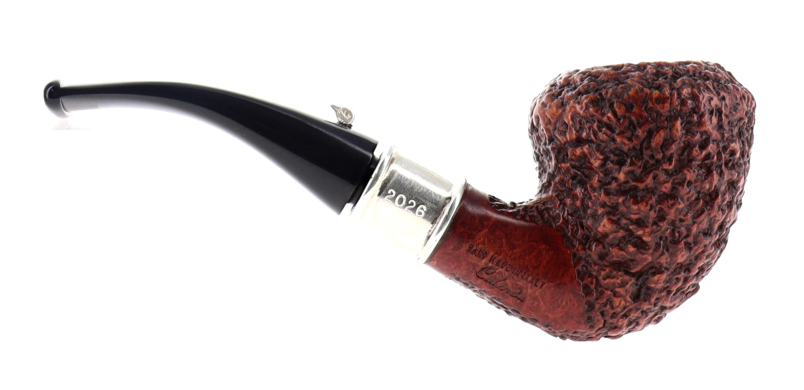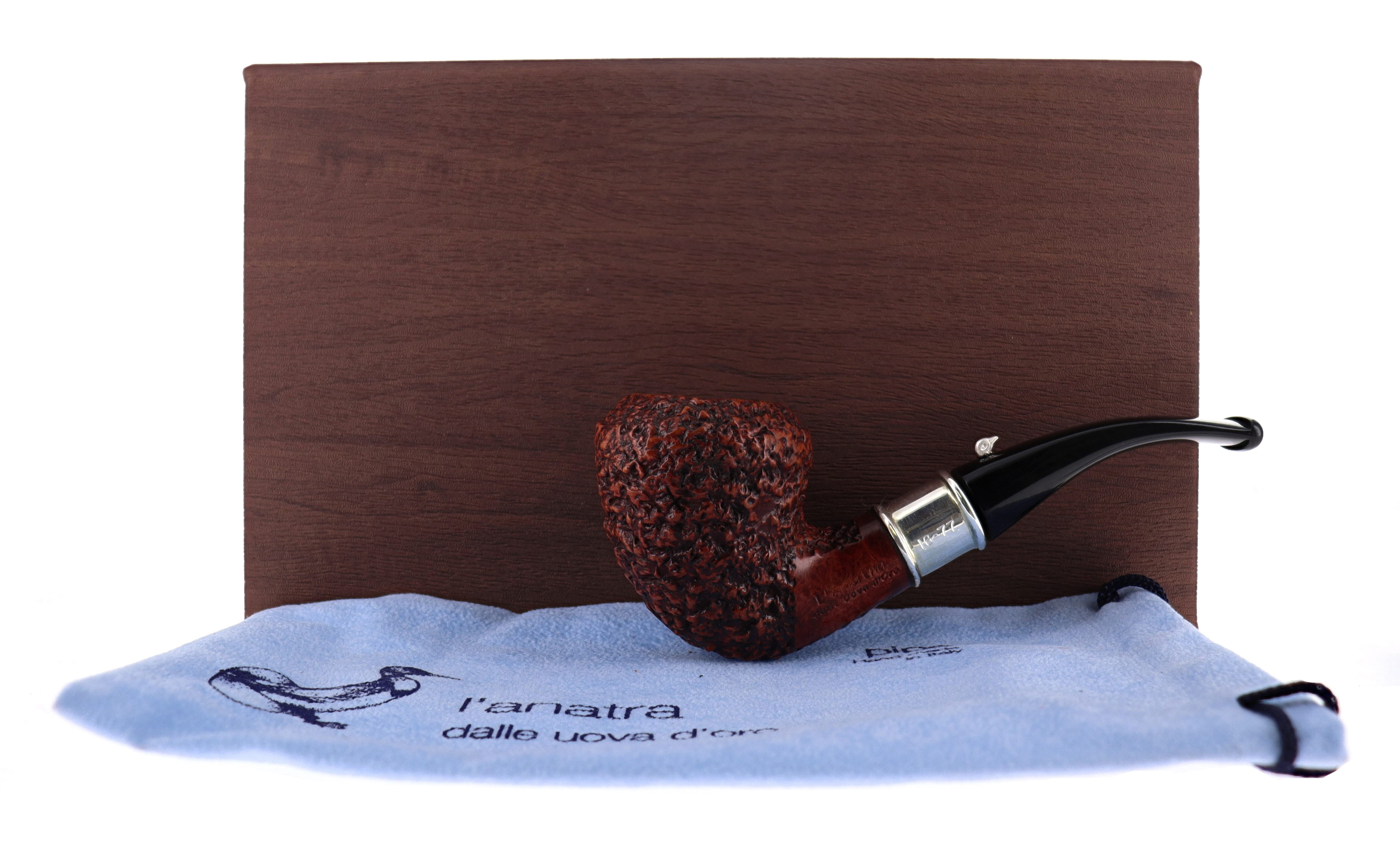 Pipa L'Anatra dalle Uova d'Oro 228 CALENDA 2026 16/77, finissaggio rusticato marrone, shape bent dublin acorn vera in argento, bocchino in metacrilato. Edizione Limitata Numerata N°16/77 Artigianale Made in Italy. Pezzo unico. In scatola originale con sacchetto di panno. Perfetta, nuova, mai fumata.