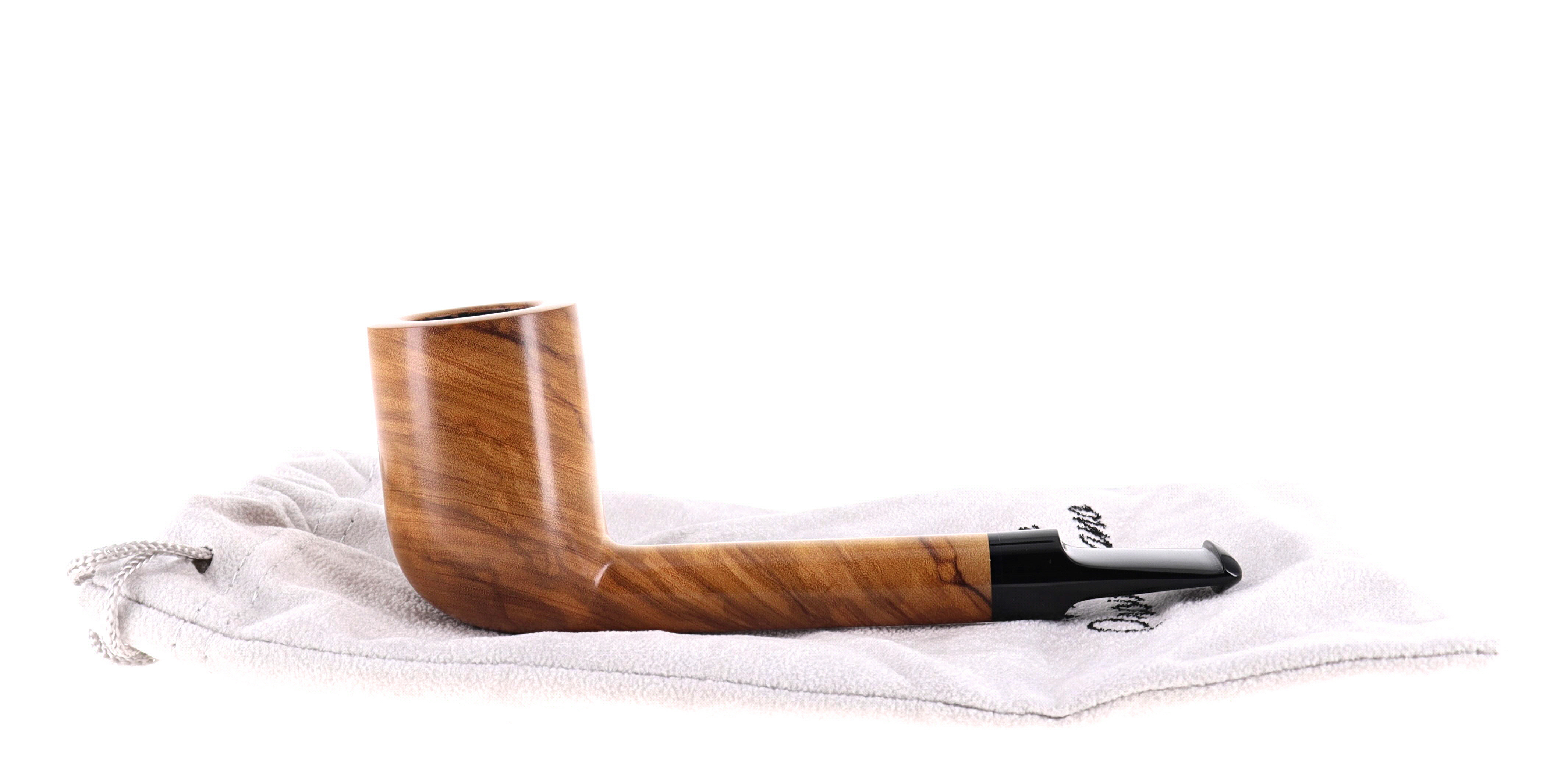 Pipa Mimmo Provenzano 127 GRADO B OLIVO, pipa in olivo, shape lovat, bocchino in ebanite. Con sacchetto porta pipa in panno. Fatta a Mano in Italia.