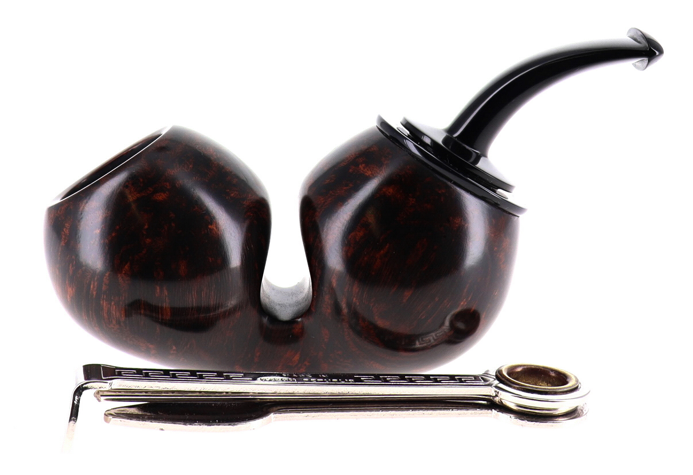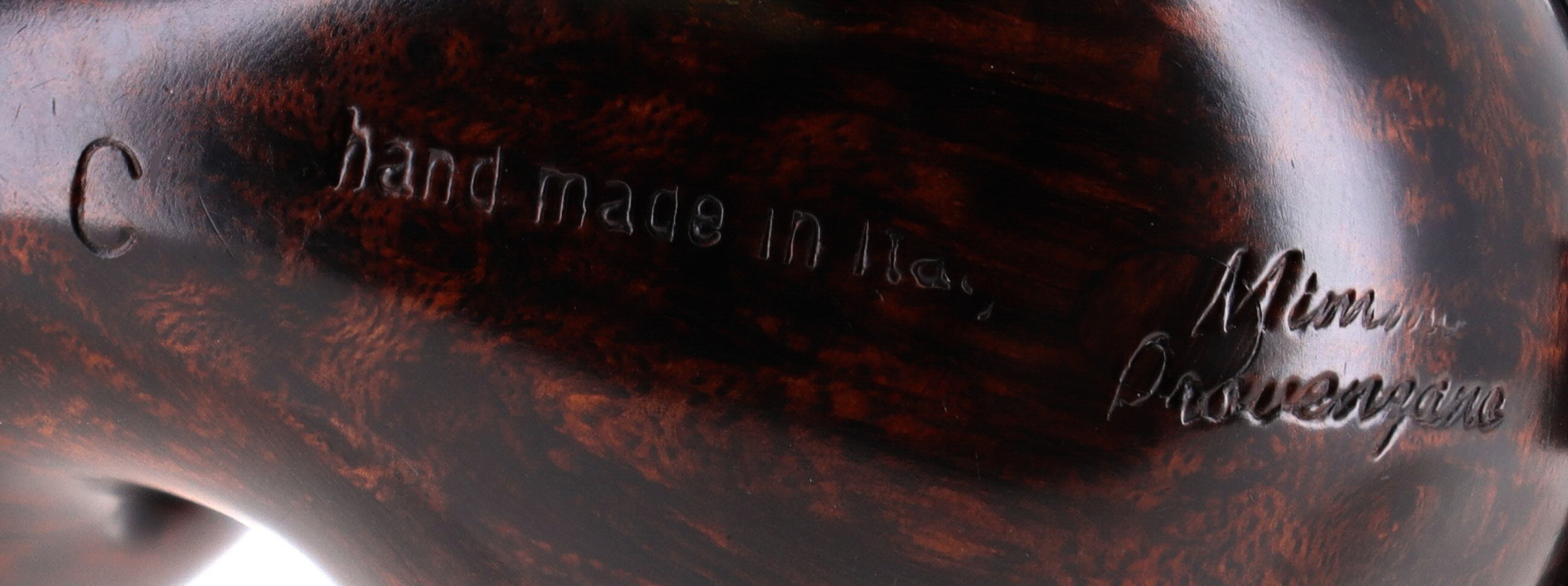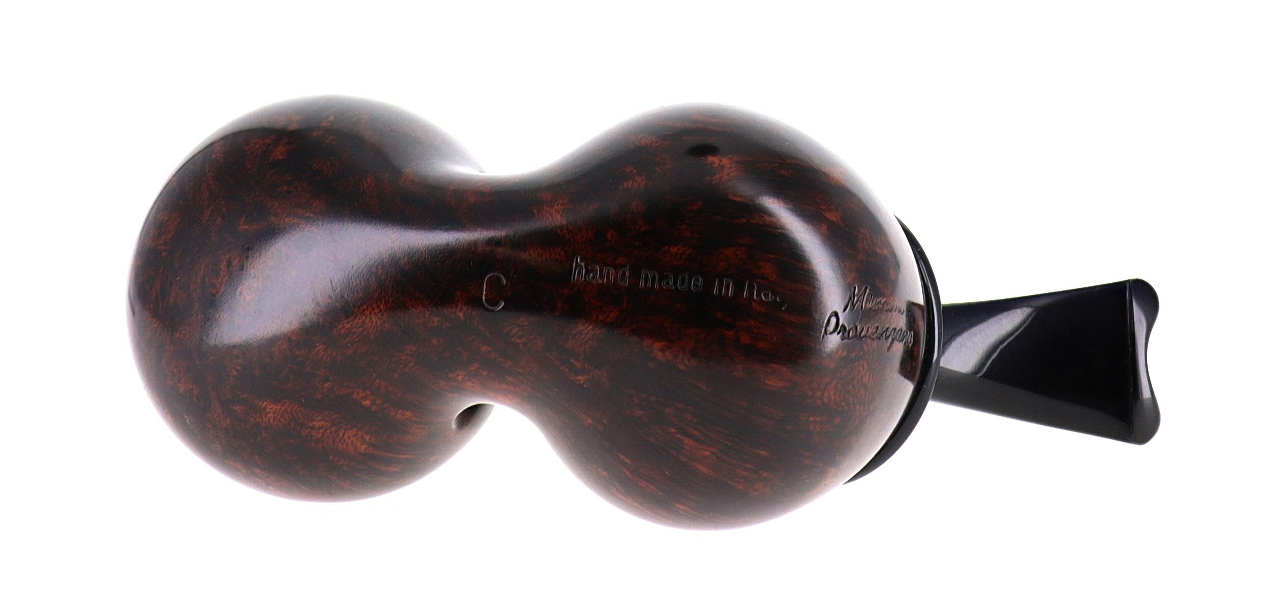 Pipa Mimmo Provenzano 122 GRADO C BEE REVERSE CALABASH, finissaggio liscio marrone, shape freehand, bocchino in ebanite. Con sacchetto porta pipa in panno. Fatta a Mano in Italia.