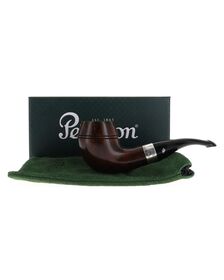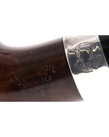 Pipa Peterson of Dublin SHERLOCK HOLMES DEERSTALKER SMOOTH, finissaggio liscio marrone, shape freehand rounded bulldog con vera in argento, bocchino in ebanite con palatale. Nuova, mai fumata.