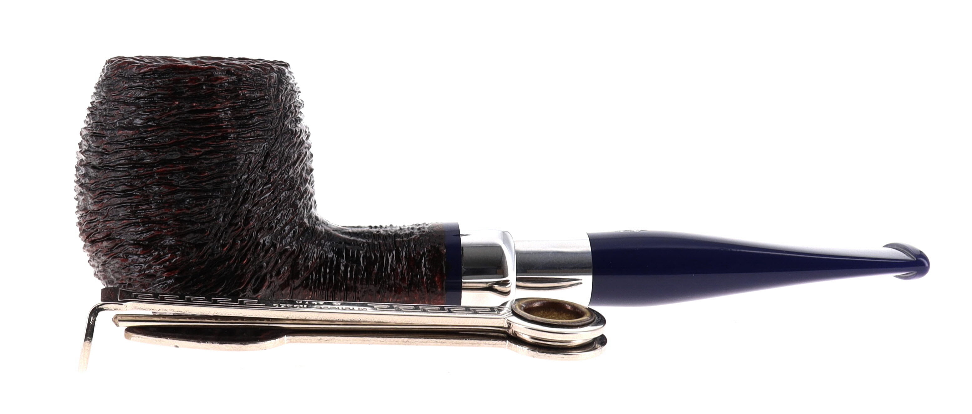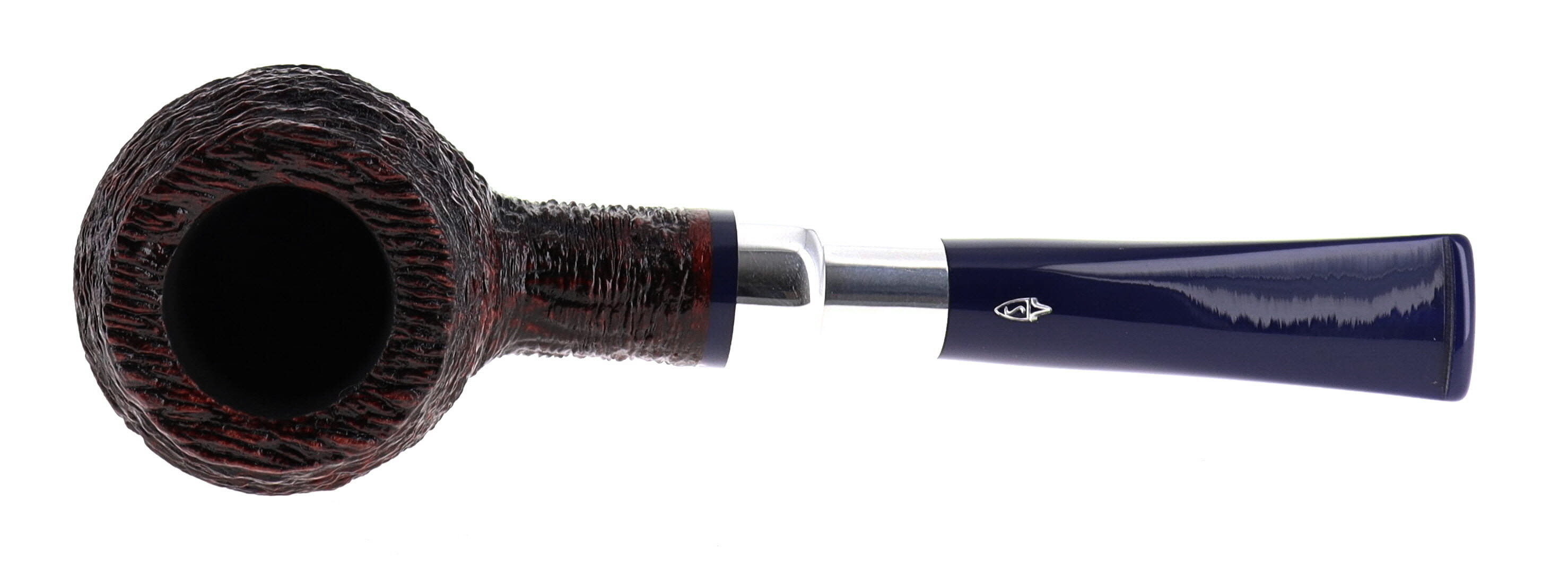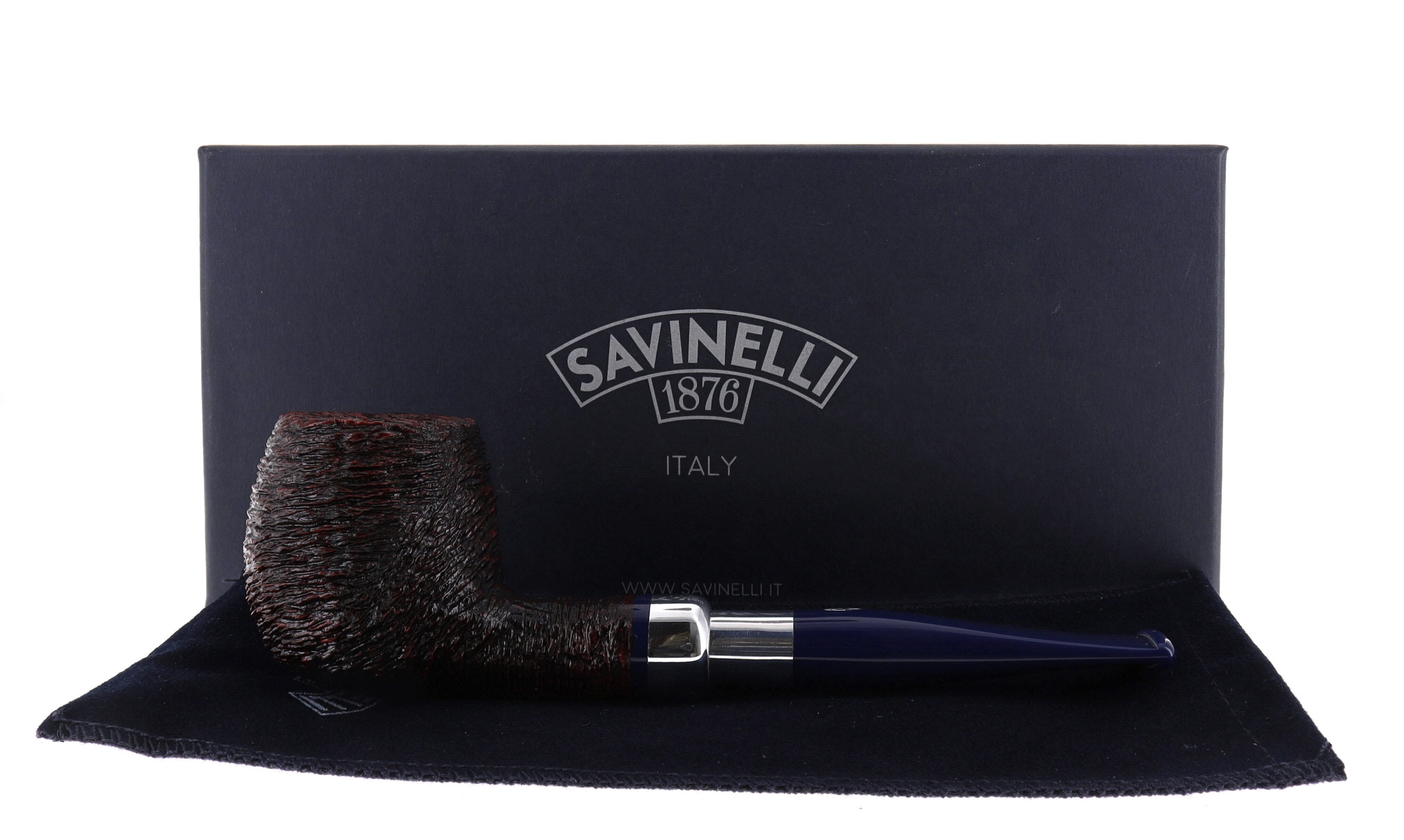 Pipa Savinelli Collezione Eleganza 207, finissaggio rusticato marrone scuro shape apple, elegante spigot in nichel, bocchino in metacrilato blu foro 6mm. Nuova, mai fumata. In elegante confezione originale con sacchetto in panno blu.