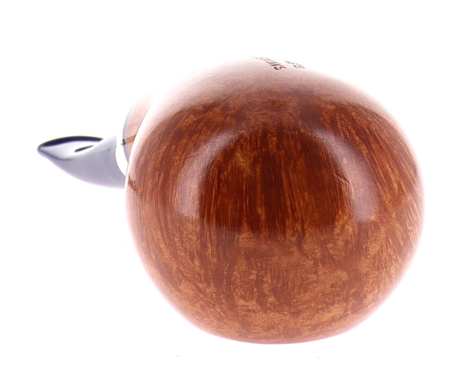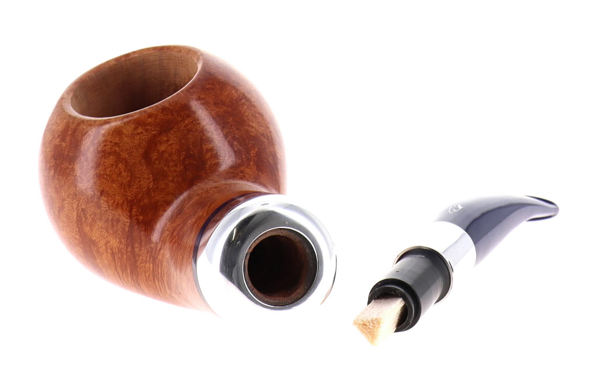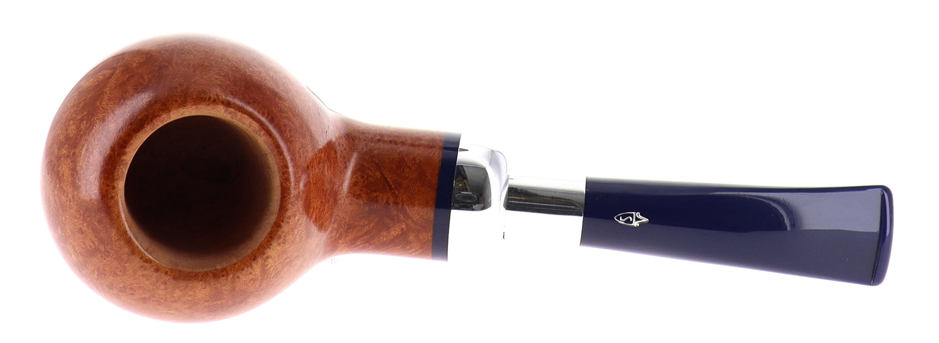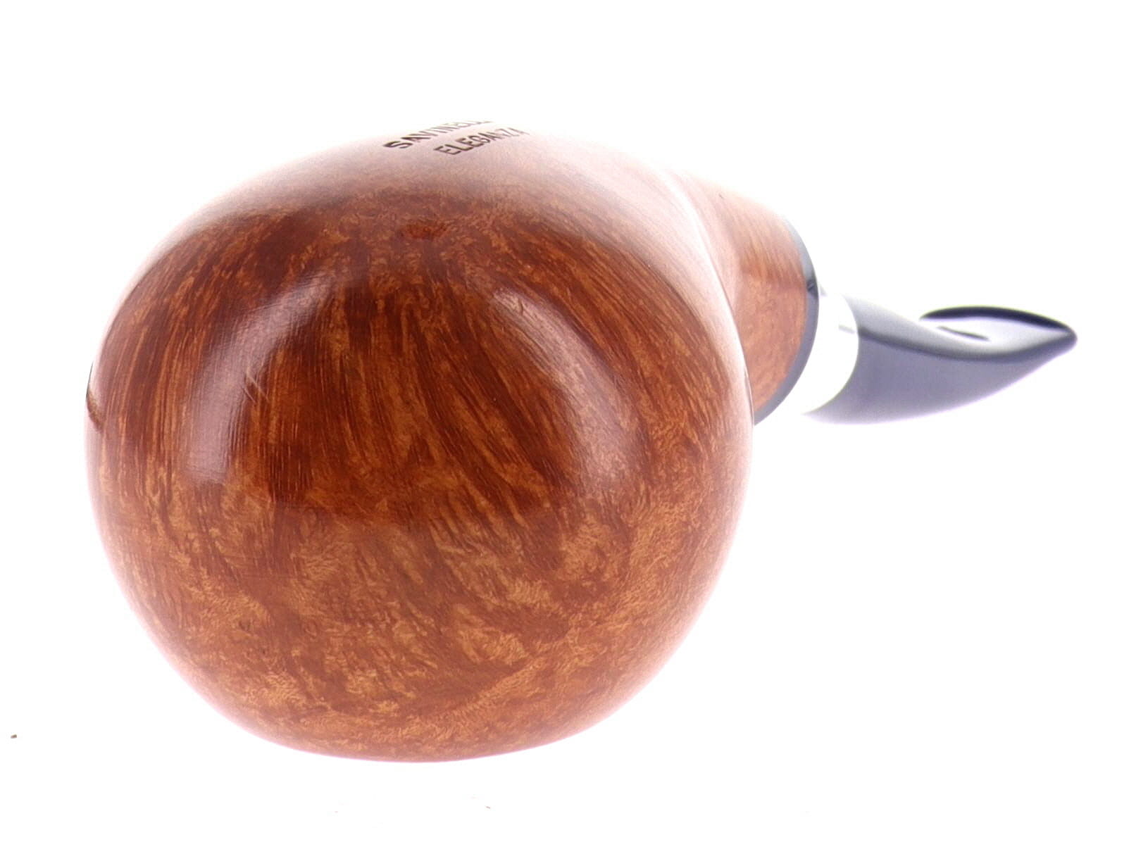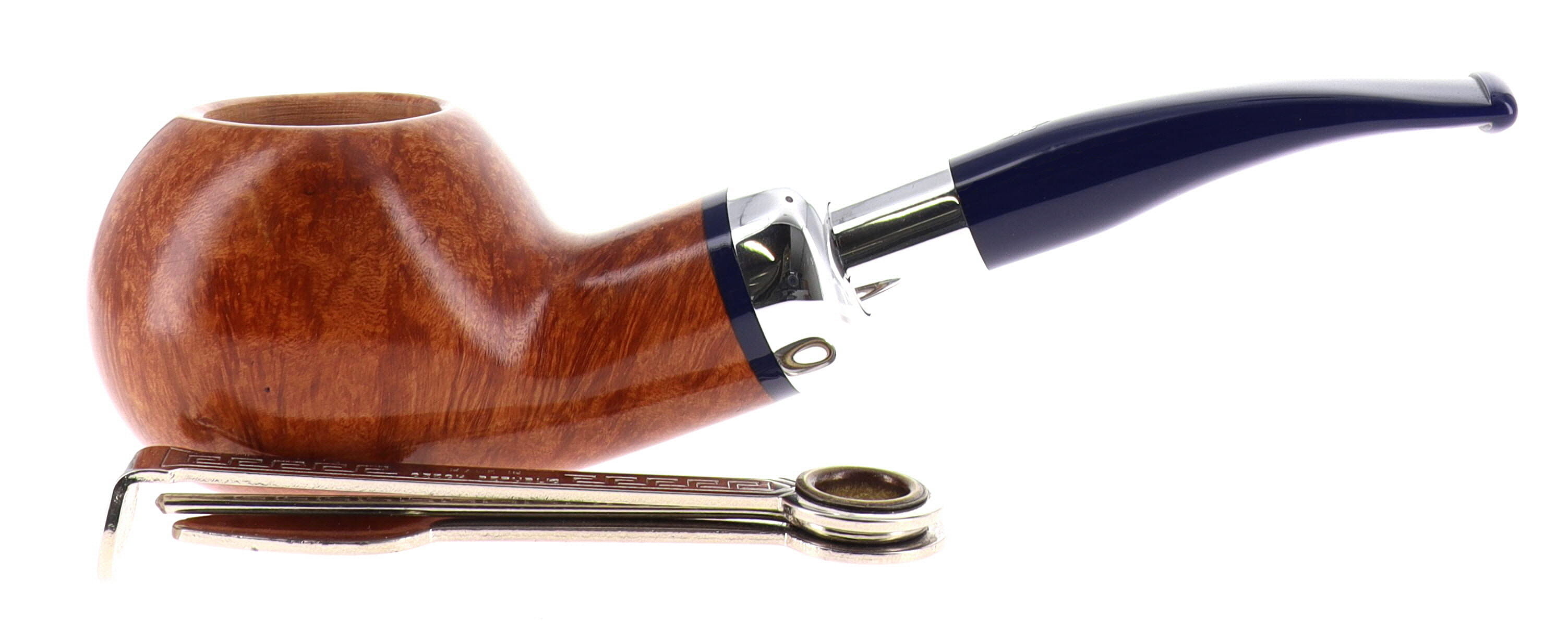 Pipa Savinelli Collezione Eleganza 320 KS, finissaggio liscio naturale, shape author, elegante spigot in nichel, bocchino in metacrilato blu foro 6mm. Nuova, mai fumata. In elegante confezione originale con sacchetto in panno blu.