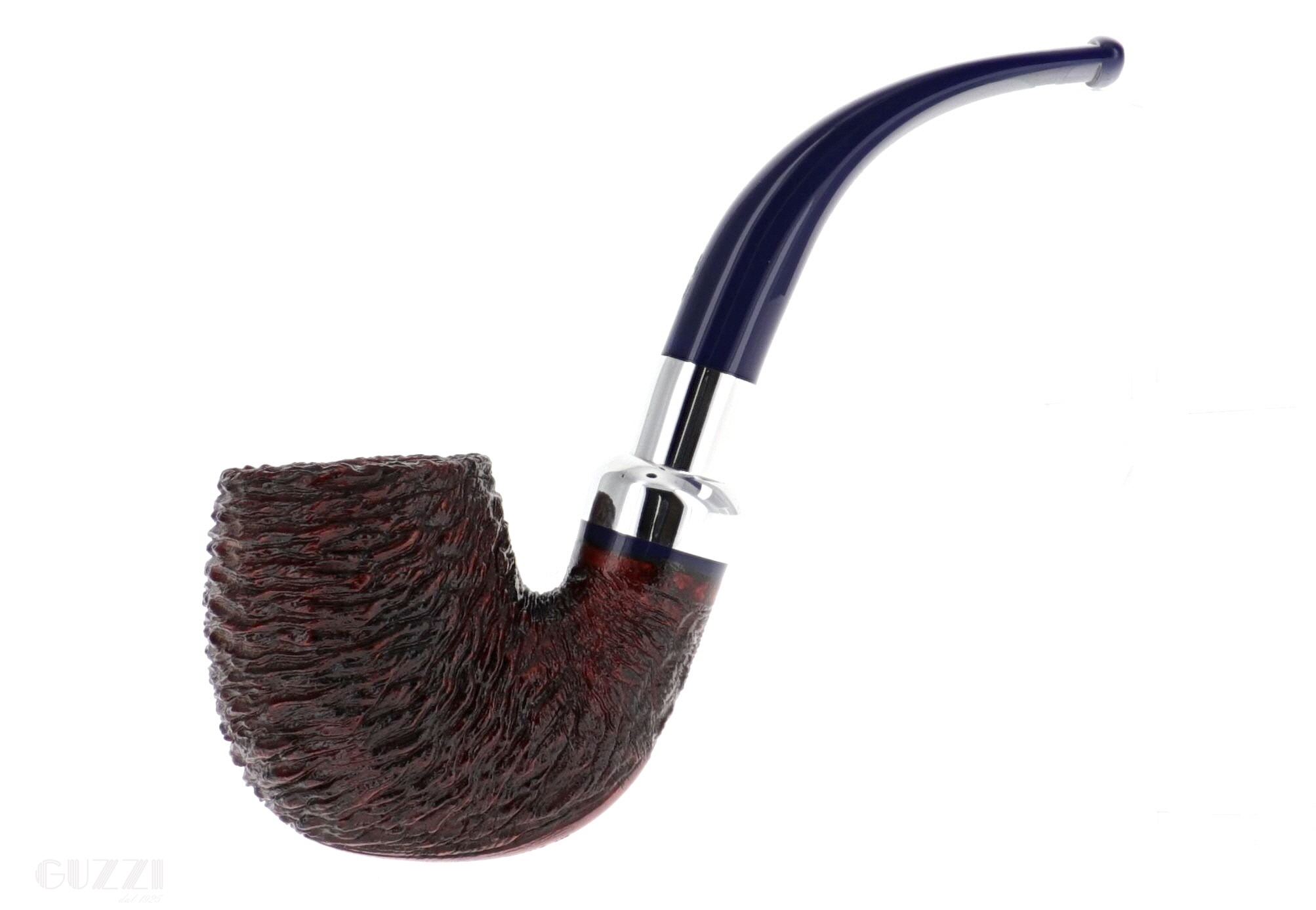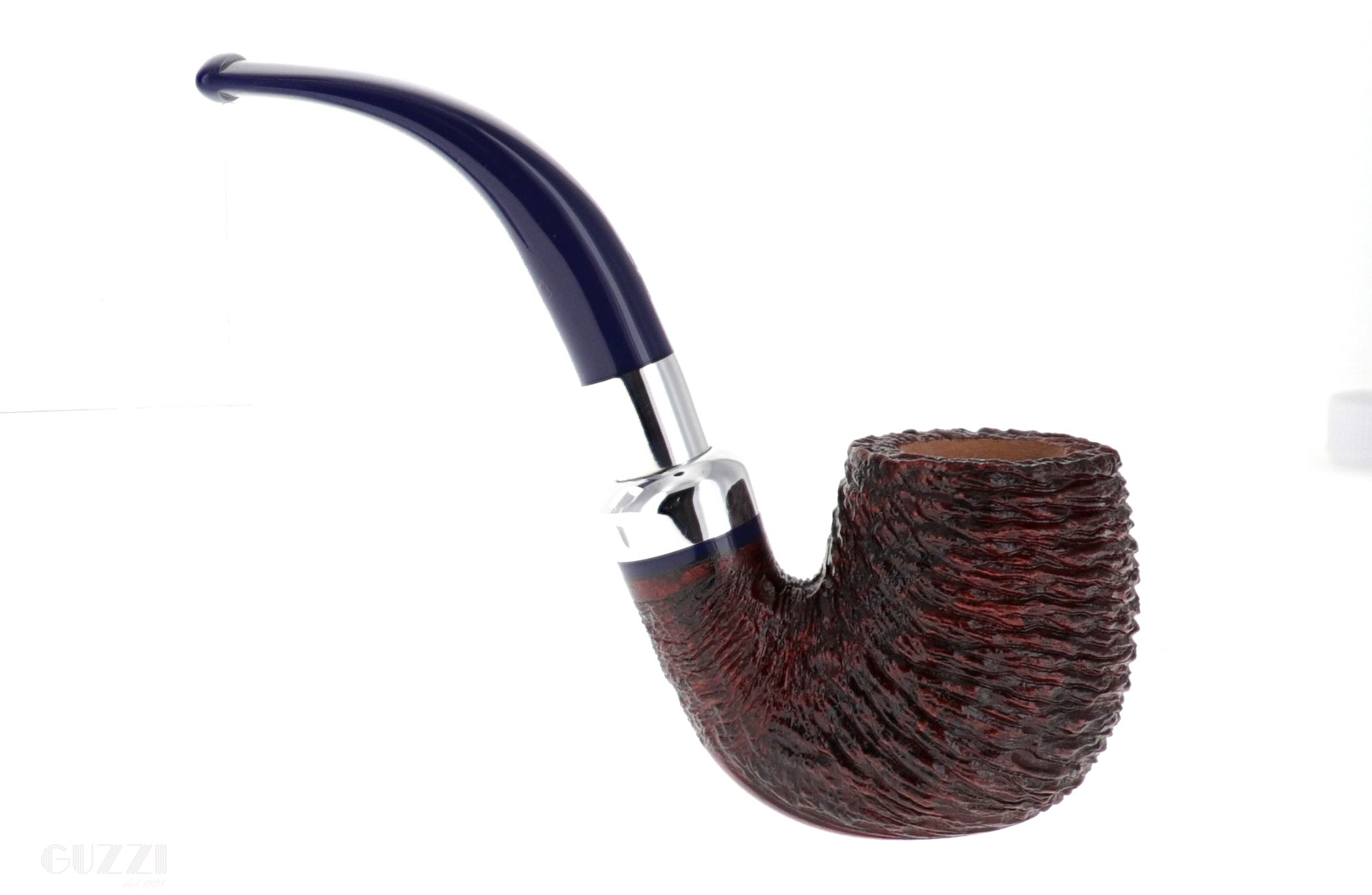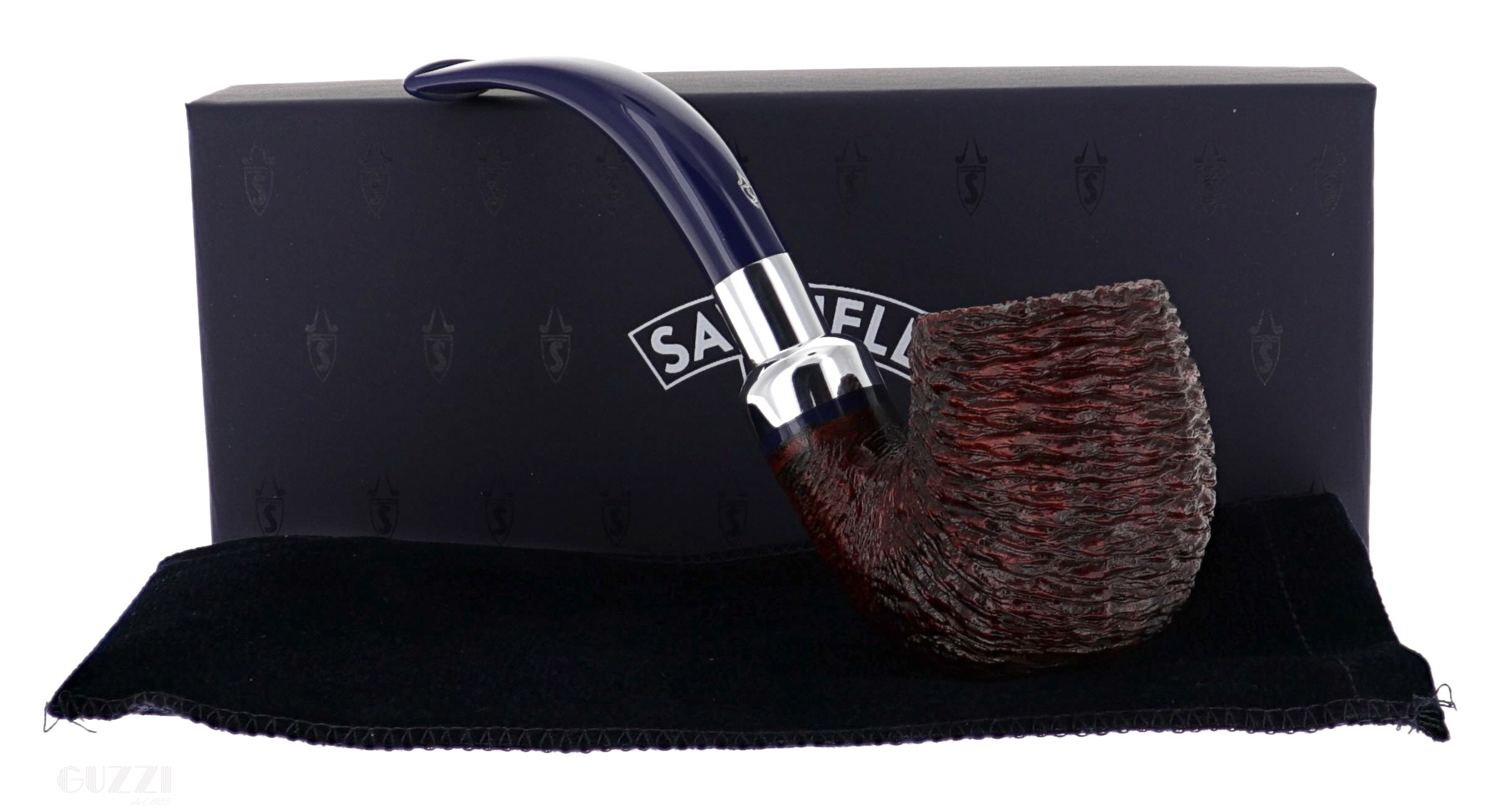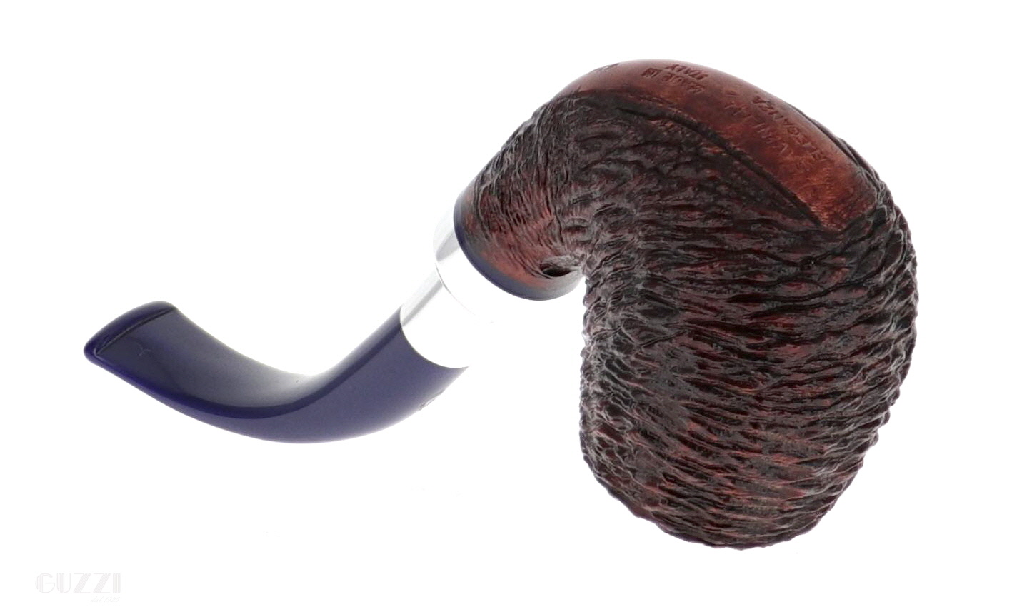 Pipa Savinelli Collezione Eleganza 614, finissaggio rusticato marrone scuro shape hungarian oom paul, elegante spigot in nichel, bocchino in metacrilato blu foro 6mm. Nuova, mai fumata. In elegante confezione originale con sacchetto in panno blu.