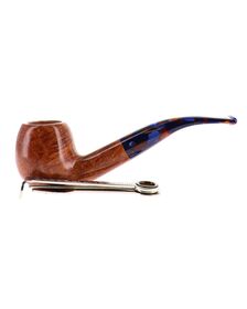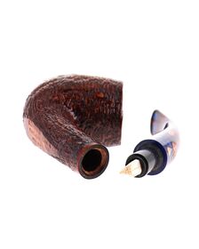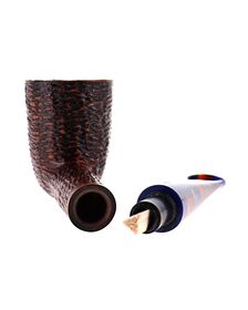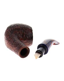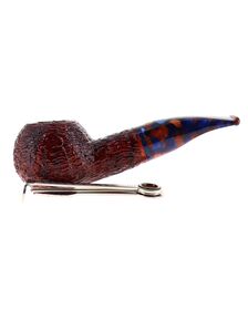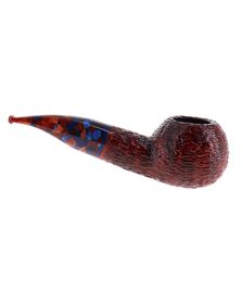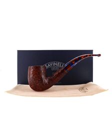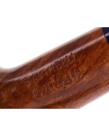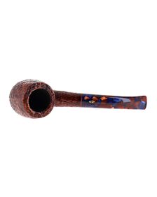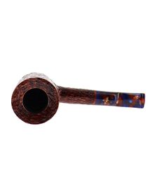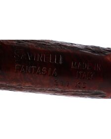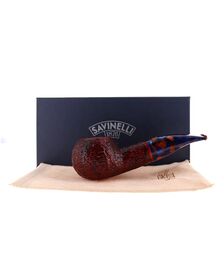 Pipa Savinelli Collezione FANTASIA. Realizzata in finitura rusticata marrone e liscia chiara, la serie Fantasia presenta un bocchino craquel� di colore rosso e blu.