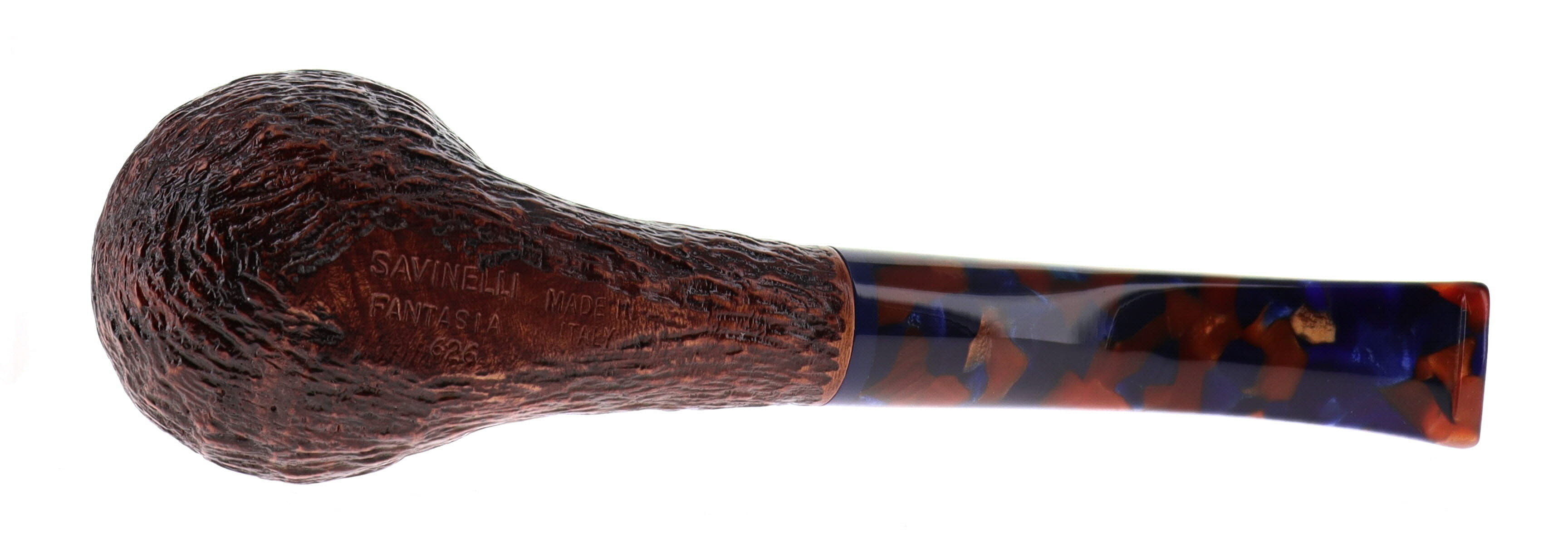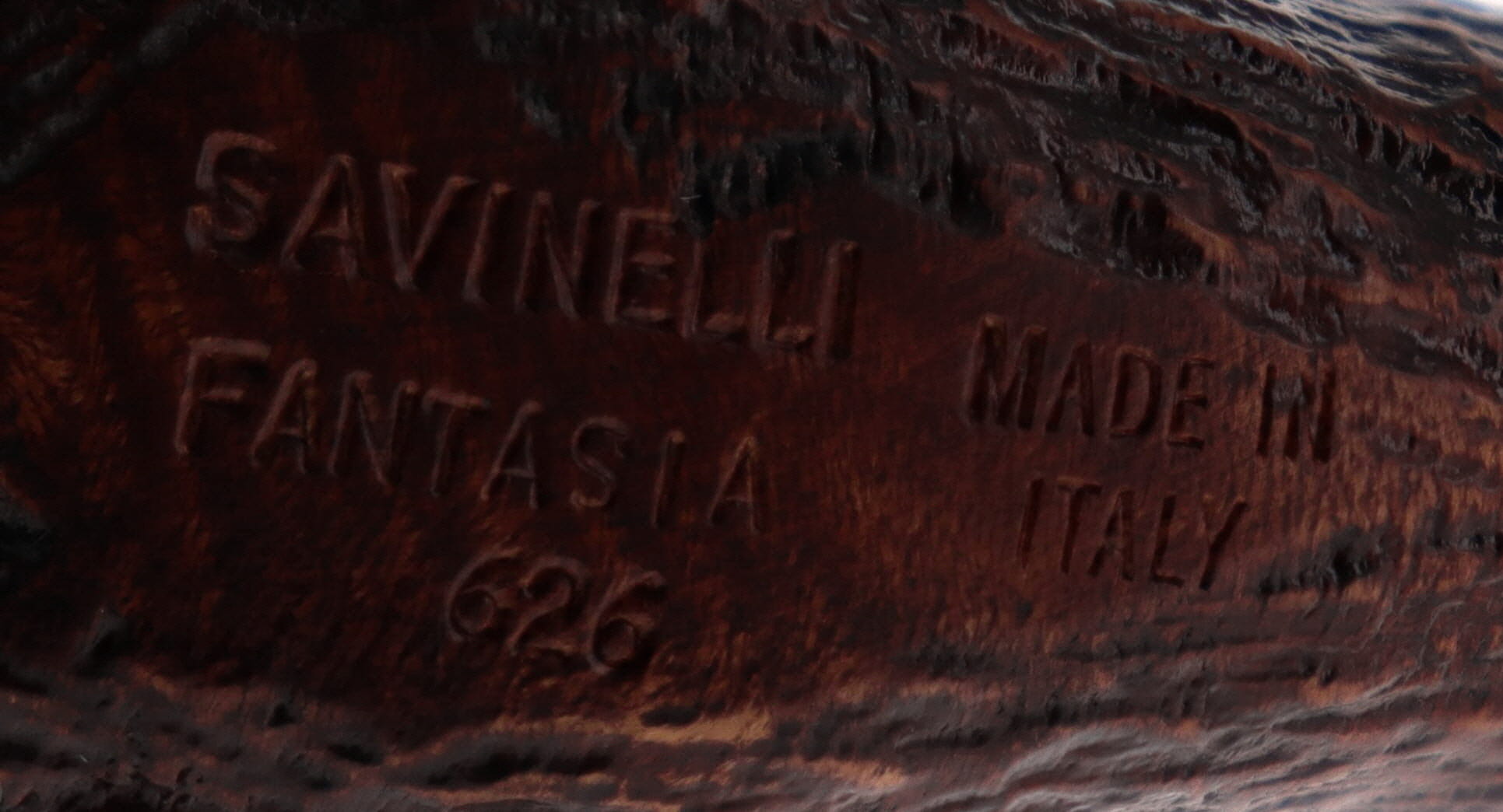 Pipa Savinelli Fantasia 626, finissaggio rusticato, shape half bent, bocchino in metacrilato con foro 6mm. In confezione Originale.