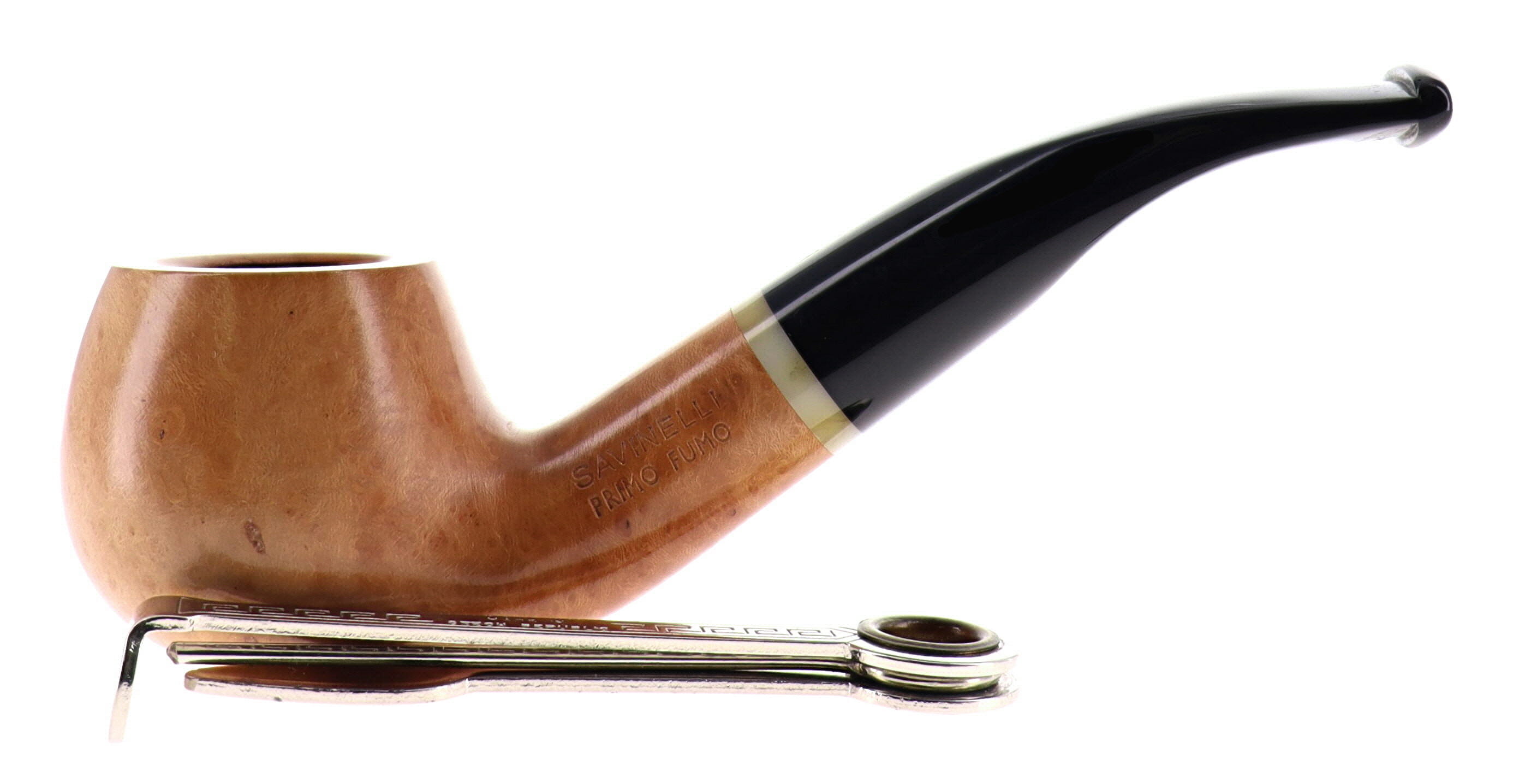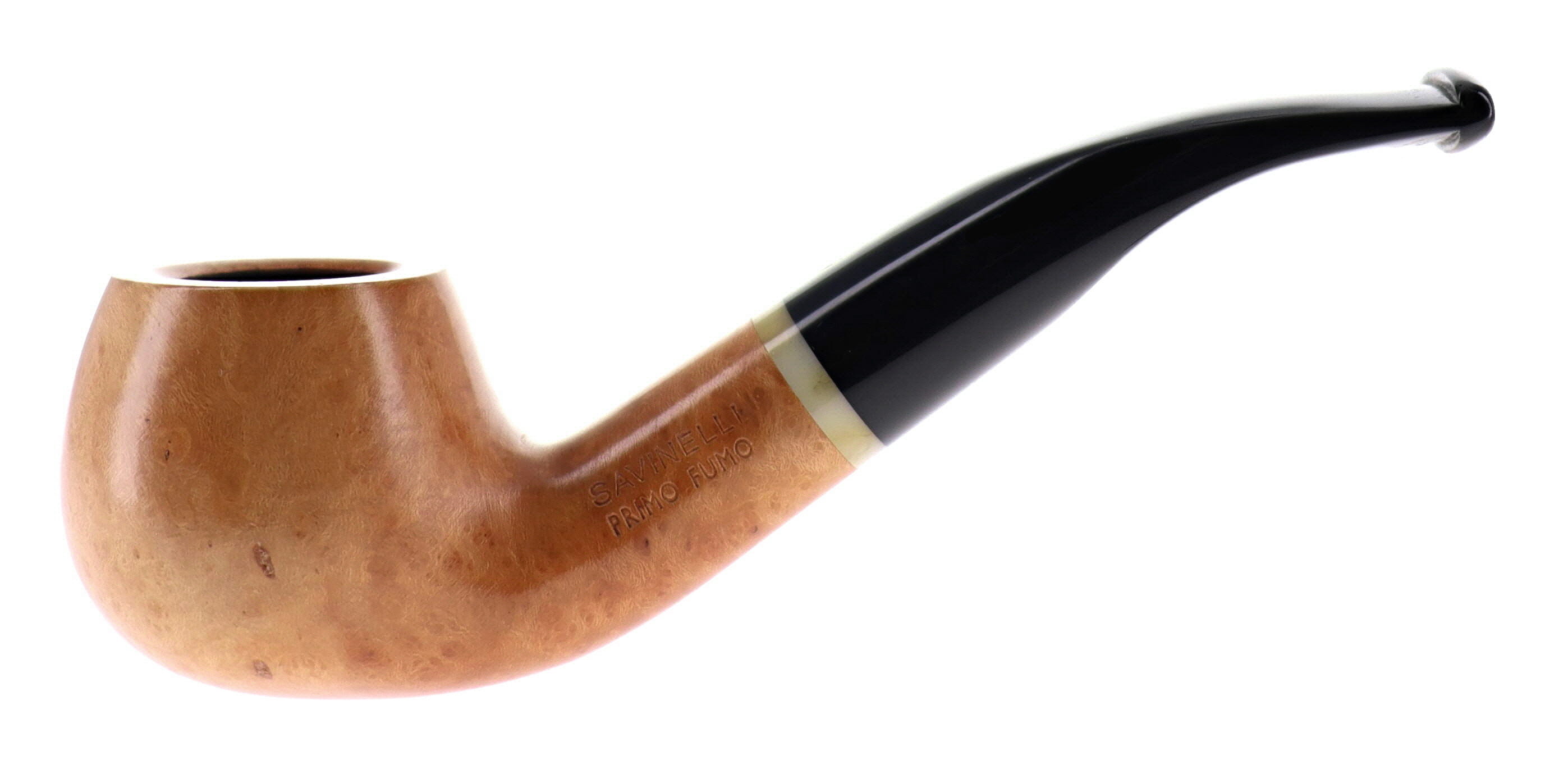 Pipa Savinelli Primo Fumo in finitura liscia. Perfetta per chi vuole accostarsi al lento fumo della pipa. Presenti piccole imperfezioni della radica che non pregiudicano assolutamente sull'ottima fumata offerta. FOTO DIMOSTRATIVA. Immagine Dimostrativa. Filtro 6 mm. In pochette originale.