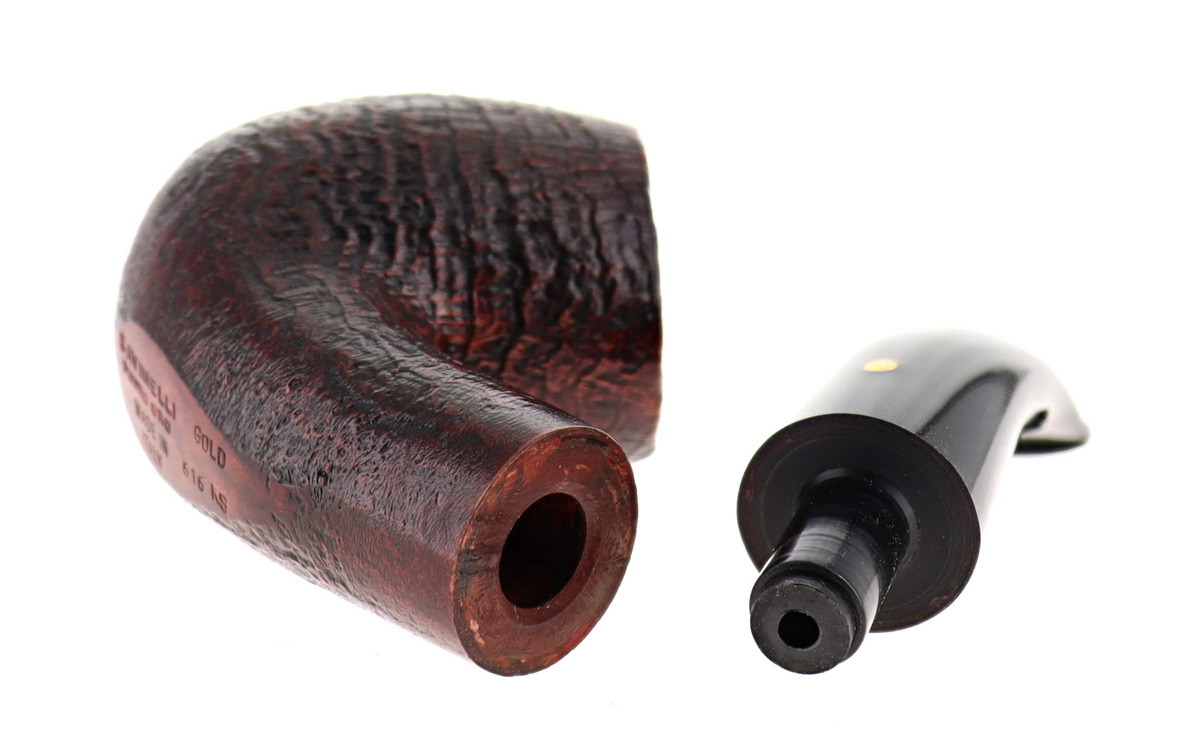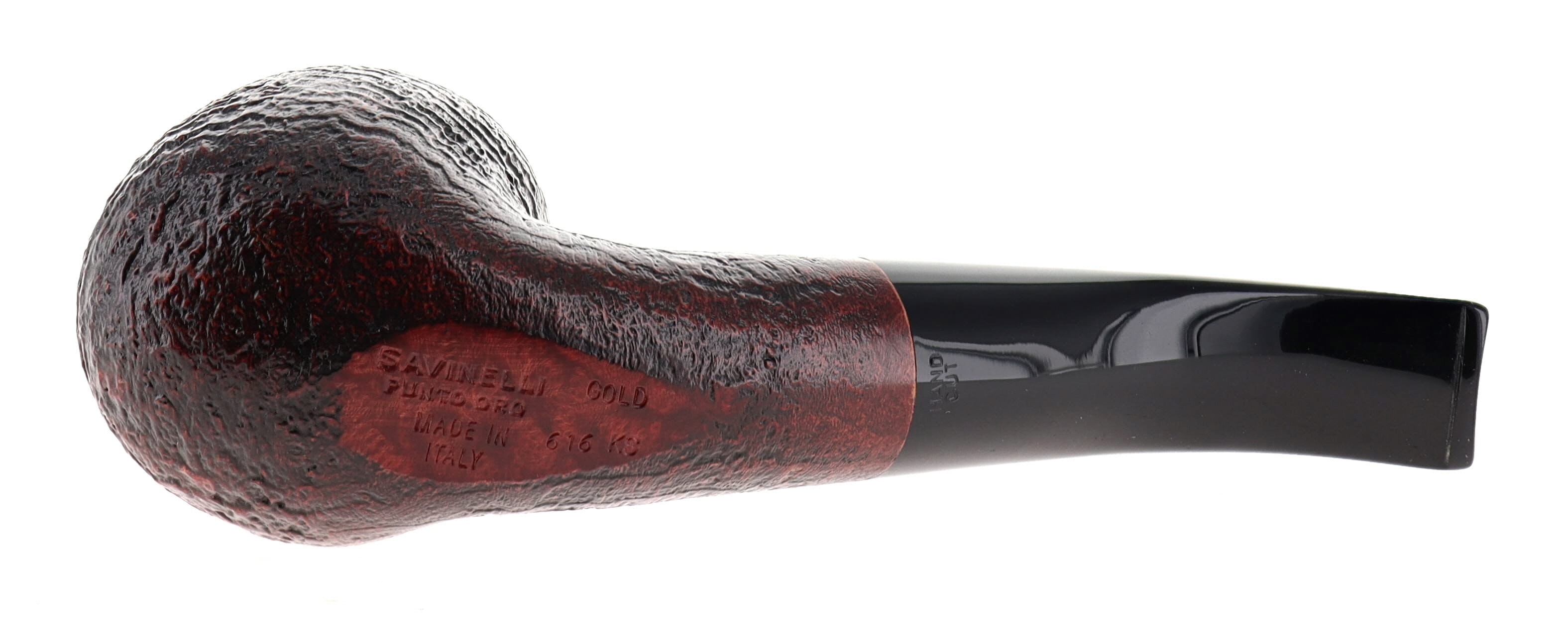 Pipa Savinelli La Punto Oro GOLD 616 KS, finissaggio sabbiato marrone, shape chubby bent billiard, bocchino in metacrilato 3mm. Nuova, mai fumata. con scatola e sacchetto originali.