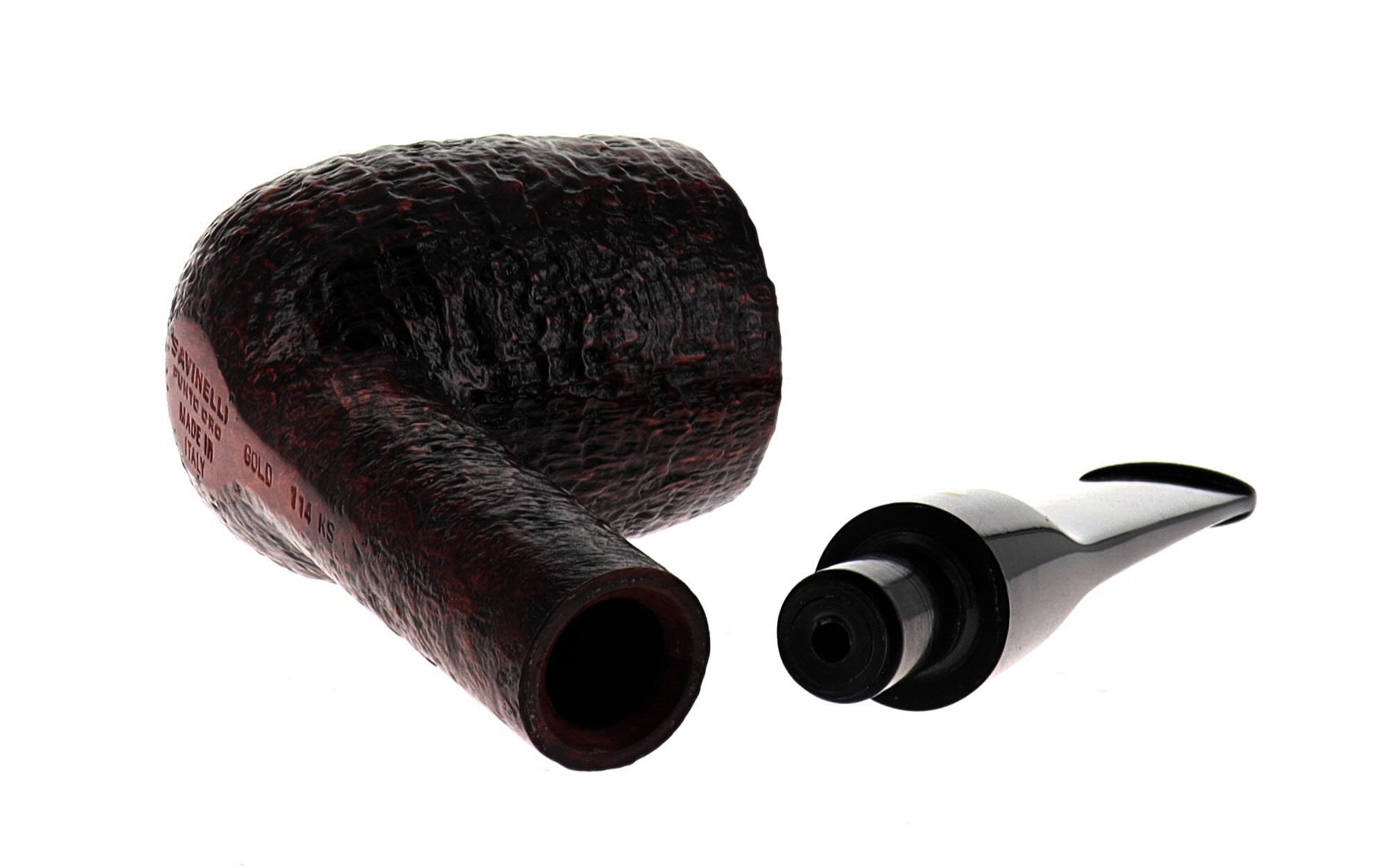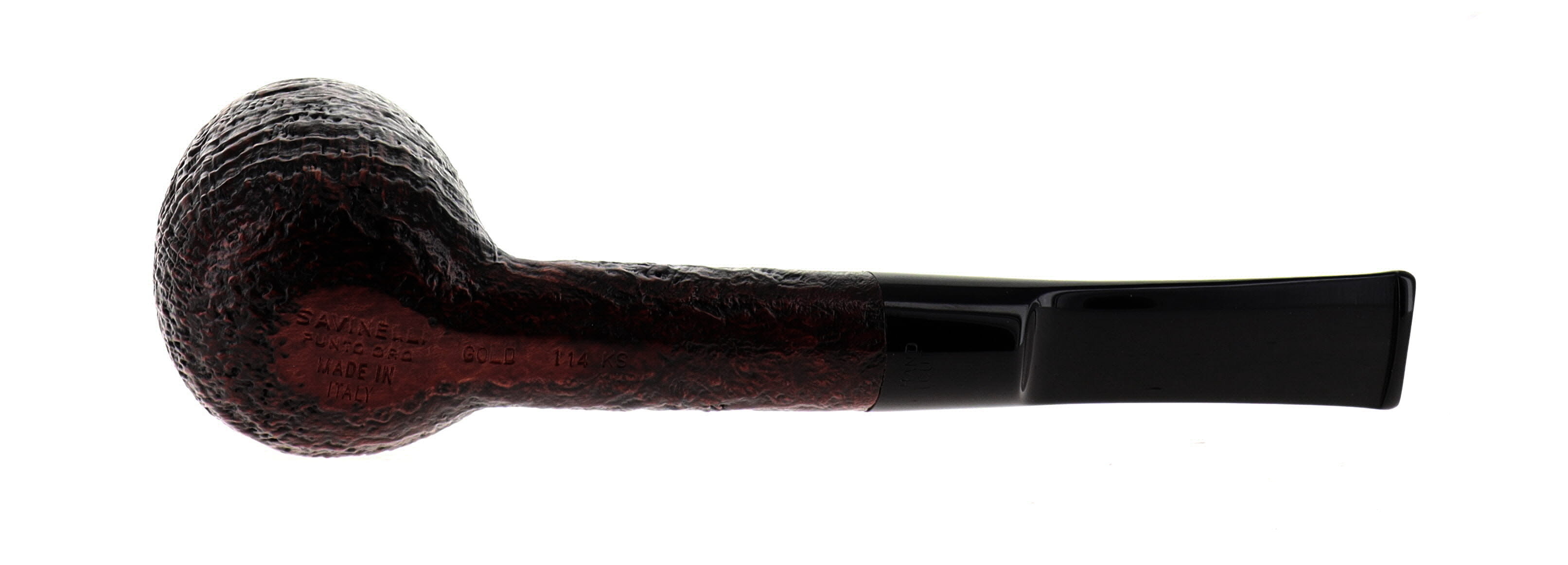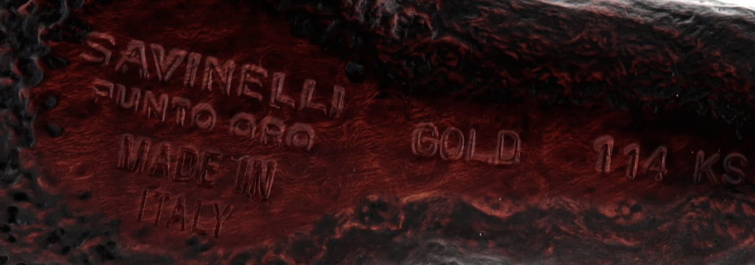 Pipa Savinelli La punto Oro GOLD 101, finissaggio sabbiato marrone scuro, shape chubby billiard maigret, bocchino in metacrilato. Nuova, mai fumata. In elegante confezione originale Savinelli con sacchetto blu.