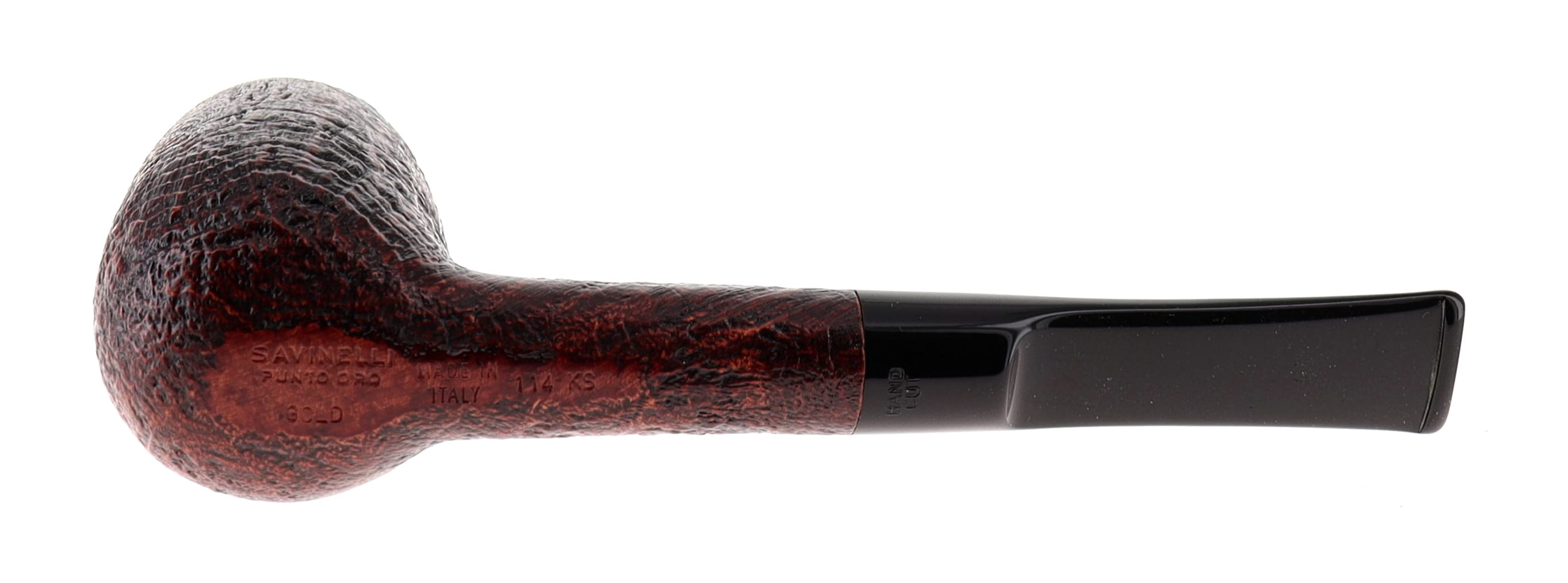 Pipa Savinelli La Punto Oro GOLD 114 KS, finissaggio sabbiato marrone, shape straight billiard, bocchino in metacrilato 6mm. Nuova, mai fumata. con scatola e sacchetto originali.