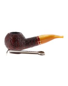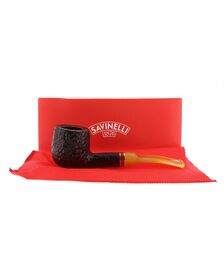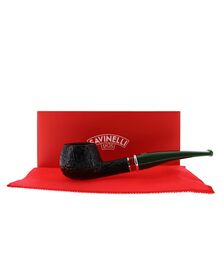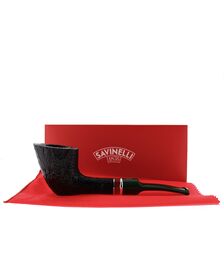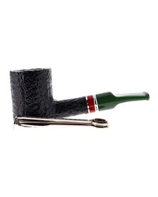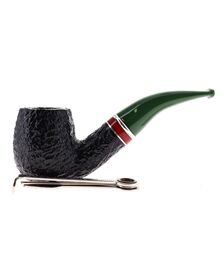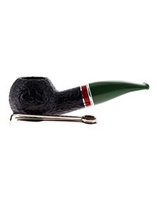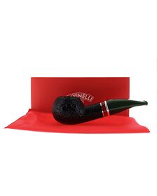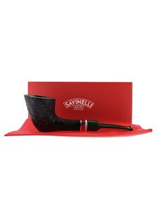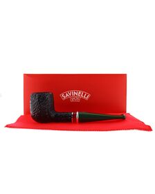 Come da tradizione, in prossimità del Natale Savinelli propone la pipa St. Nicholas, quest'anno caratterizzata da una finitura rusticata marrone scuro. Il bellissimo bocchino in metacrilato che alterna i colori verde chiaro e scuro che ricordano l'albero di Natale è decorato con due verette dorate che rinchiudono una vera in metacrilato di colore bianco.