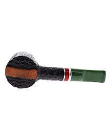 Pipa Savinelli St. Nicholas 2021 606 KS, finissaggio rusticato marrone, shape bent billiard, bocchino in metacrilato verde chiaro e verde scuro con due verette dorate che racchiudono una vera in metacrilato bianco 9mm. Nuova, mai fumata. Edizione Limitata 2021.
