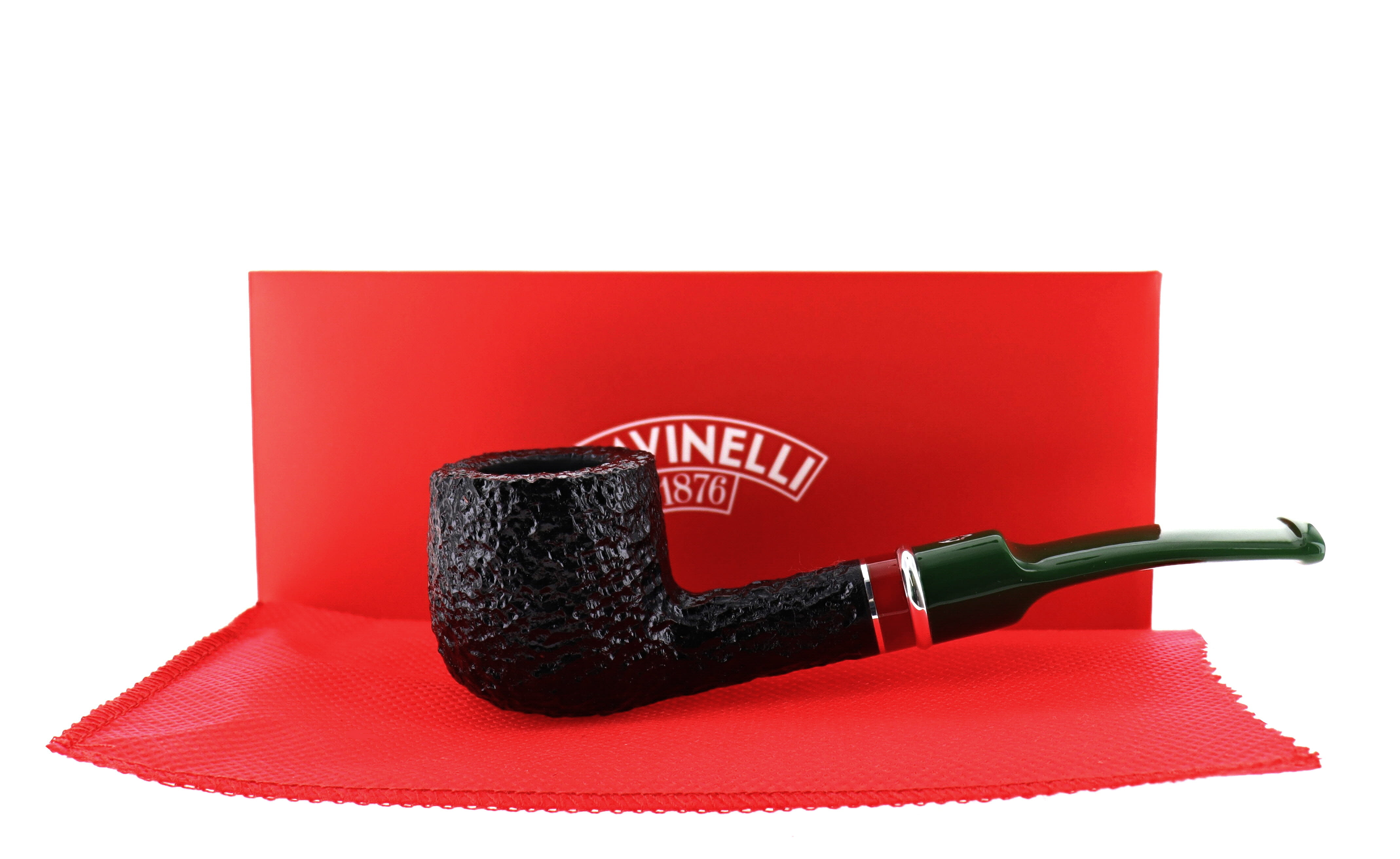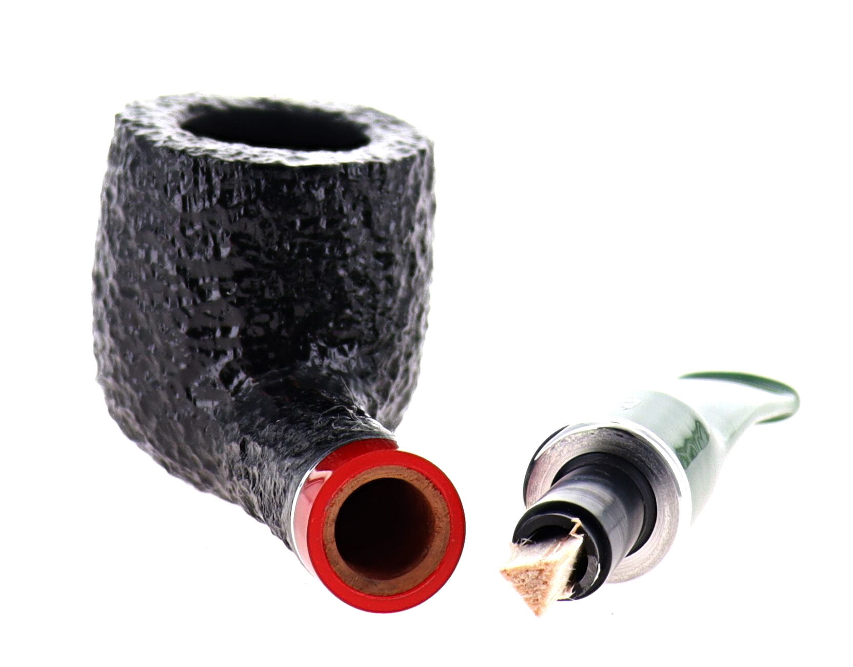 Come da tradizione, in prossimità del Natale proponiamo la pipa St. Nicholas, quest’anno caratterizzata da un finissaggio rusticato nero. Il design è impreziosito da una veretta rossa in metacrilato e una più sottile in alluminio. Il bocchino in metacrilato verde, presenta un anello di colore argento che si abbina perfettamente alla pipa. La serie è proposta in 15 modelli differenti.