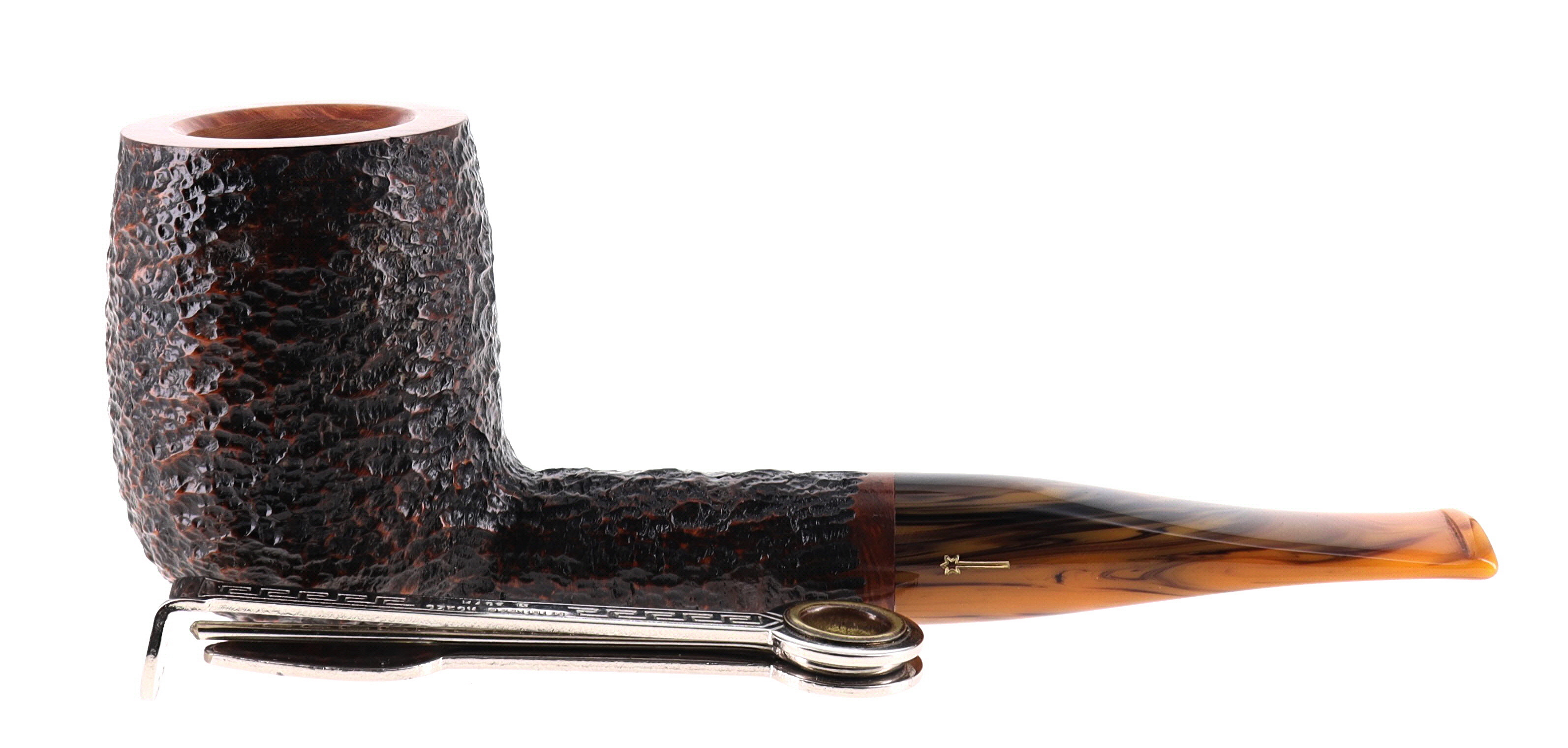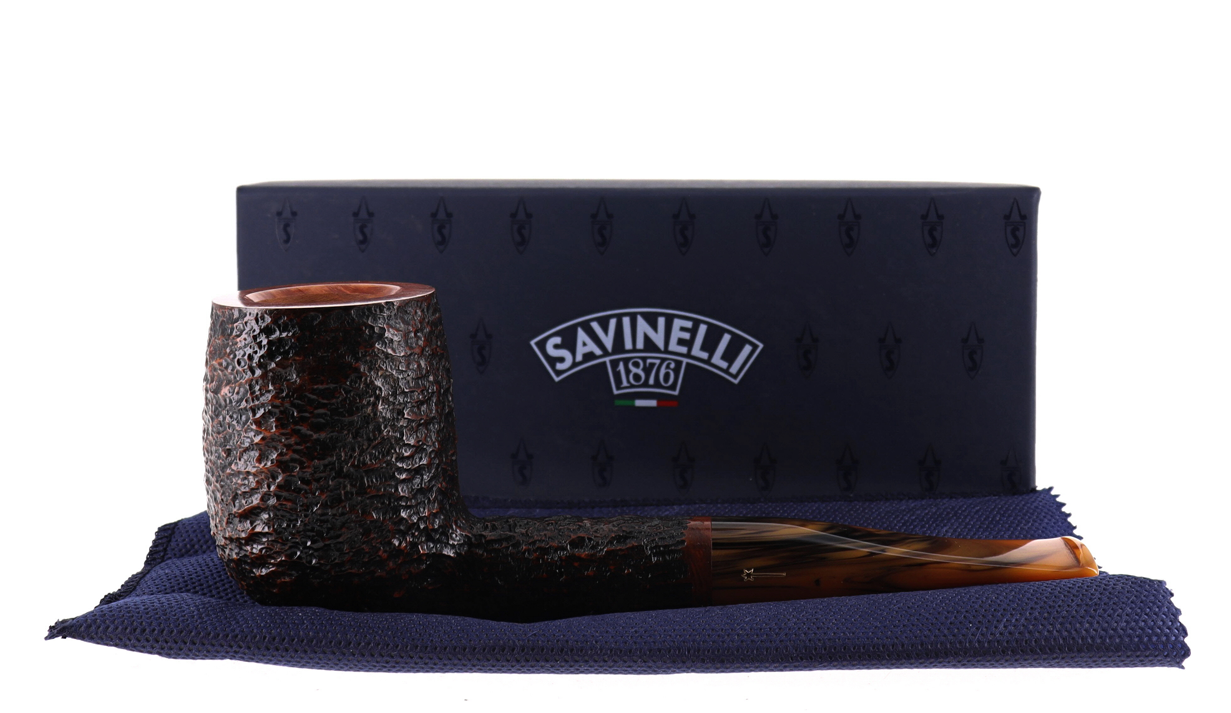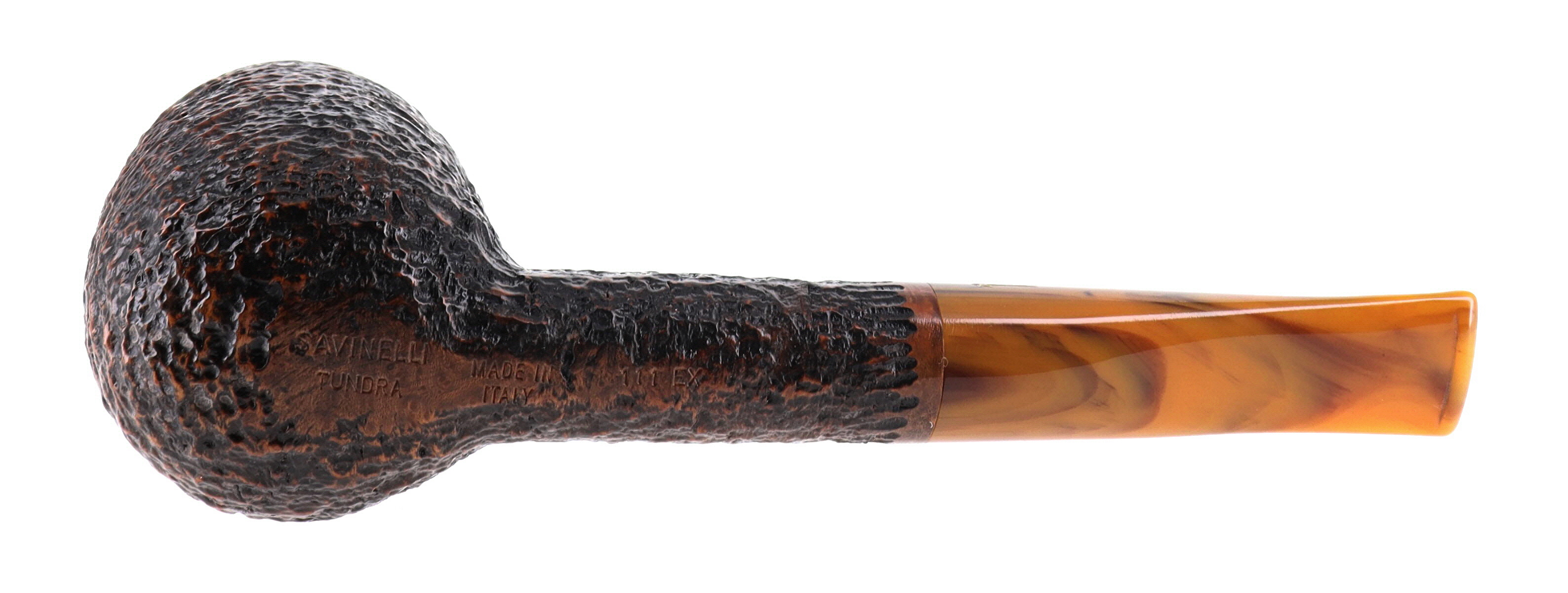 Pipa Savinelli TUNDRA 111 KS, finissaggio rusticato marrone, shape billiard, bocchino in metacrilato melange sui toni del marrone 9mm. Nuova, mai fumata. In confezione originale con sacchetto in panno blu.