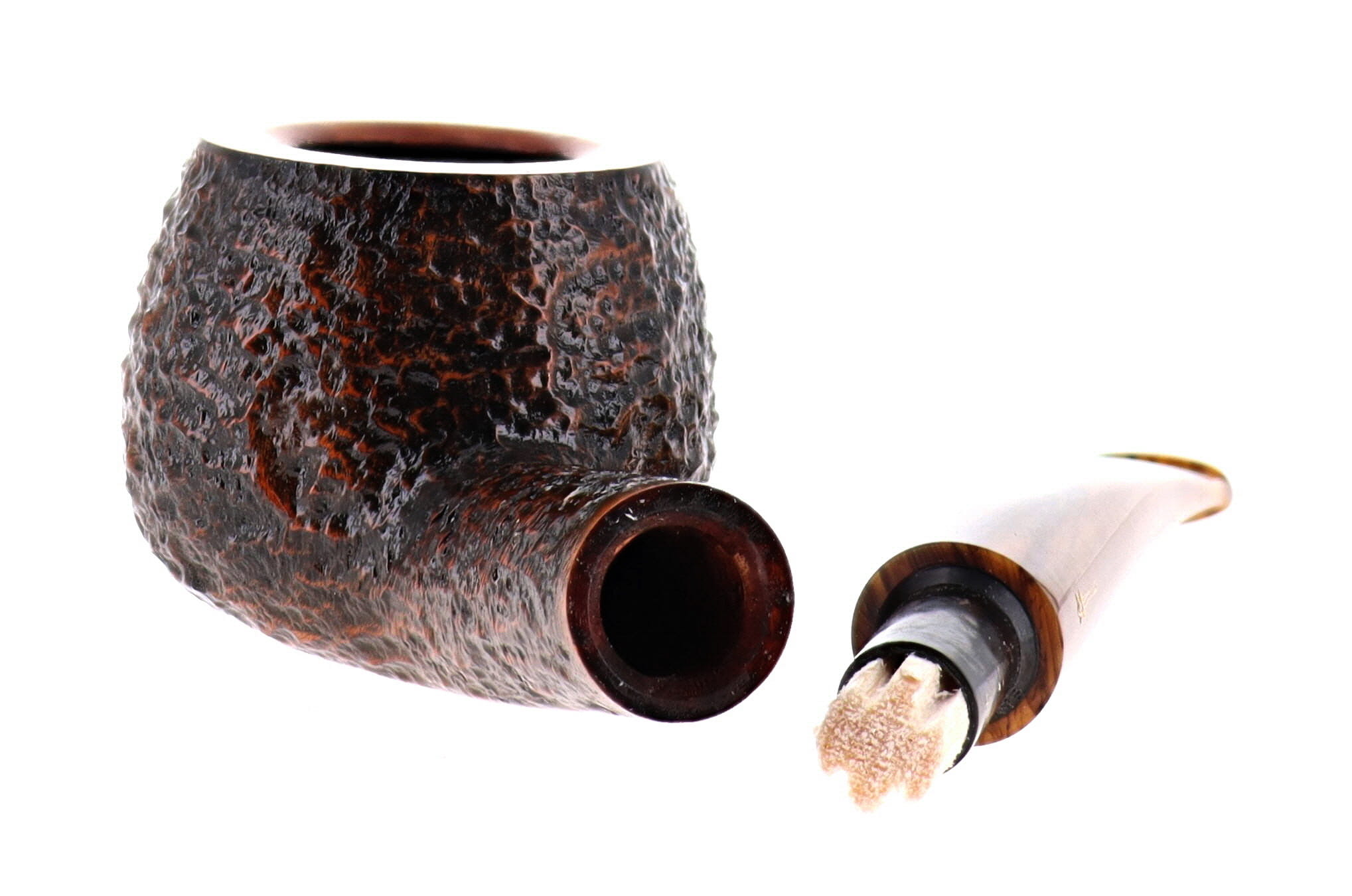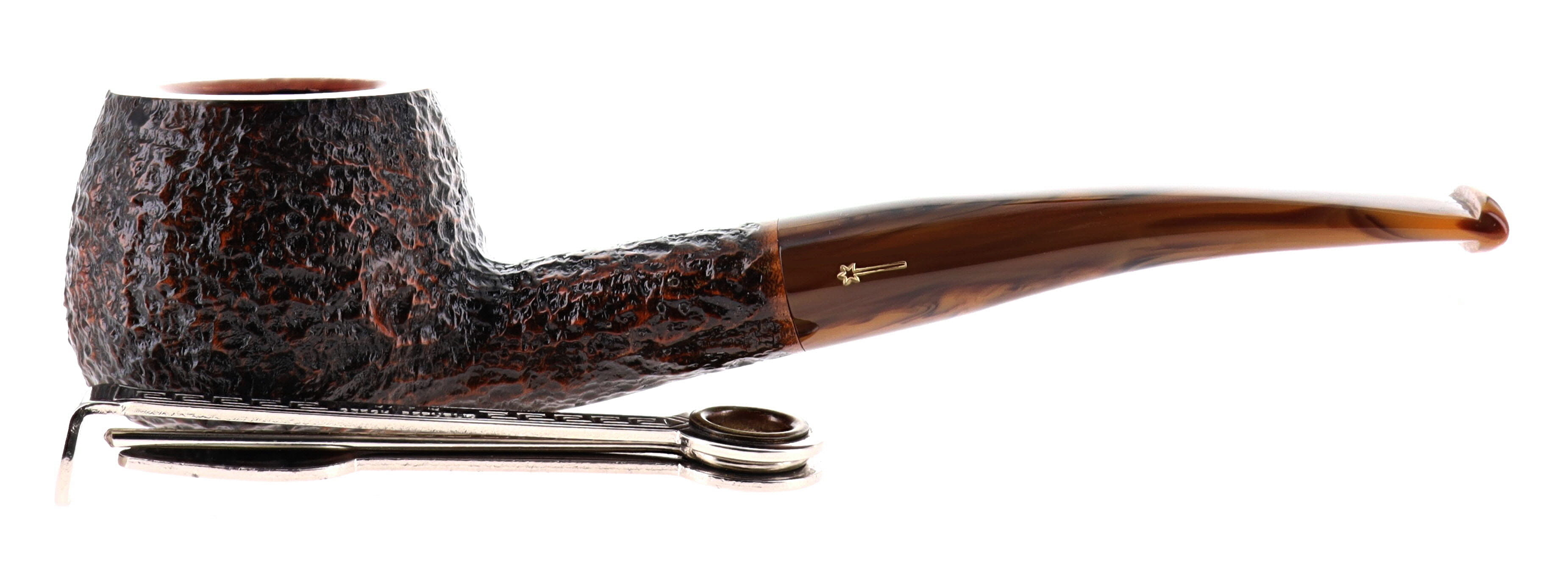 Pipa Savinelli TUNDRA 315 EX EXTRAORDINAIRE, finissaggio rusticato marrone, shape prince semicurva, bocchino in metacrilato melange sui toni del marrone filtro 9mm. Nuova, mai fumata. In confezione originale con sacchetto in panno blu.