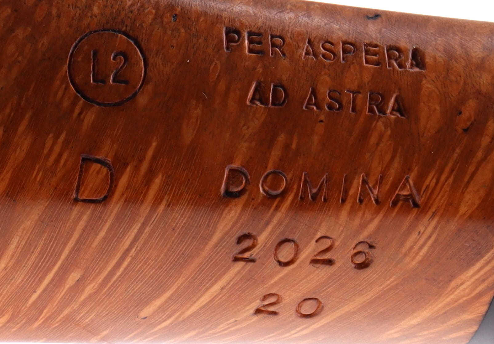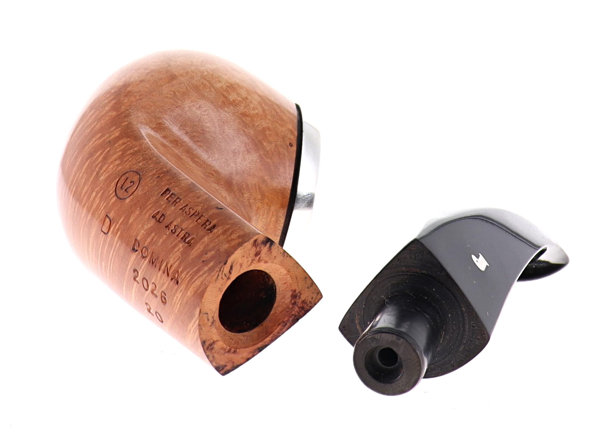 Pipa Ser Jacopo della Gemma 872 DOMINA 2026 L2 D N°20, finissaggio liscio chiaro, shape author con parafiamma in argento, bocchino in metacrilato. Edizione Limitata Numerata. Con scatola e sacchetto originale in panno. Perfetta, nuova, mai fumata. Made in Pesaro, Italy.