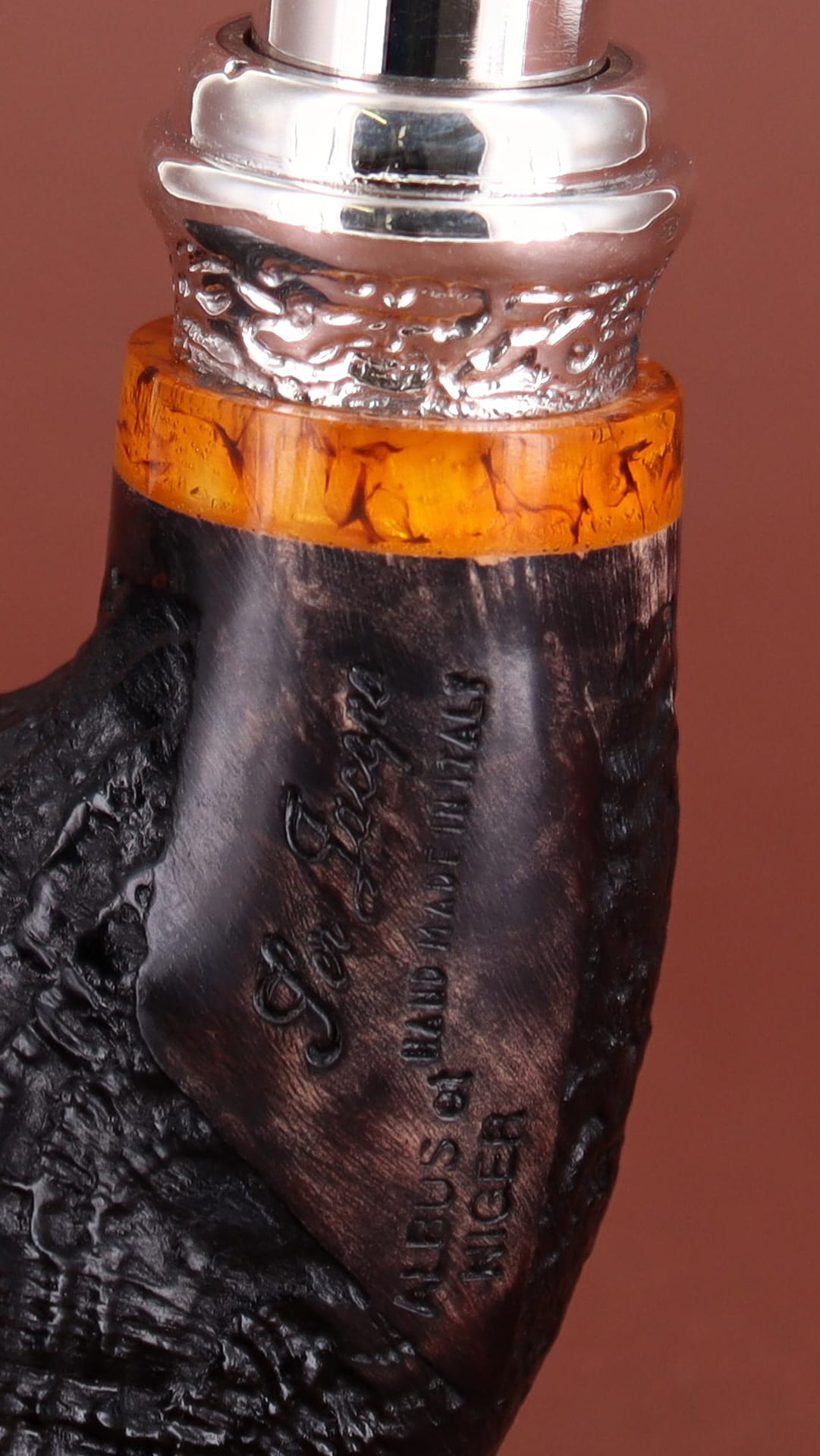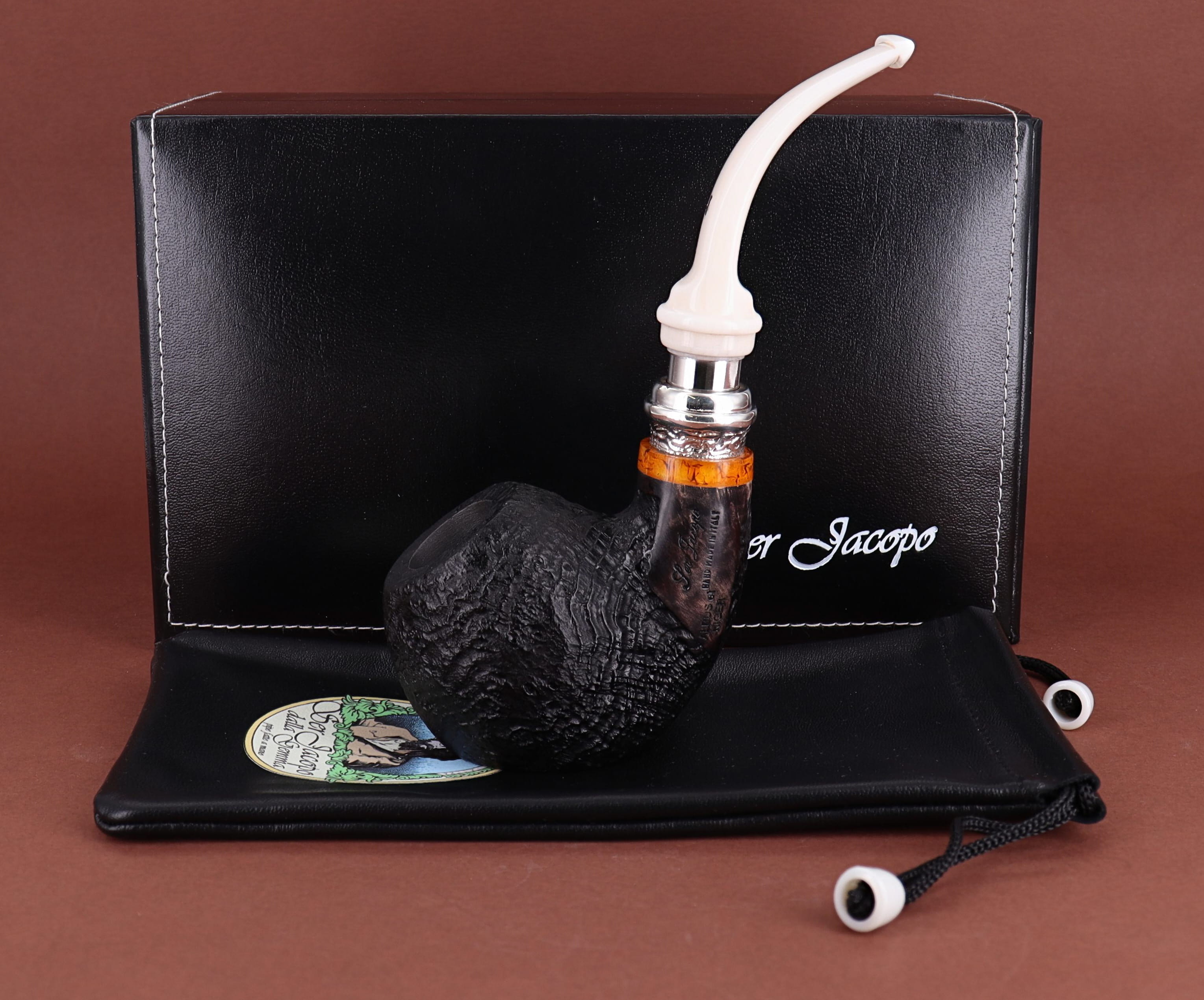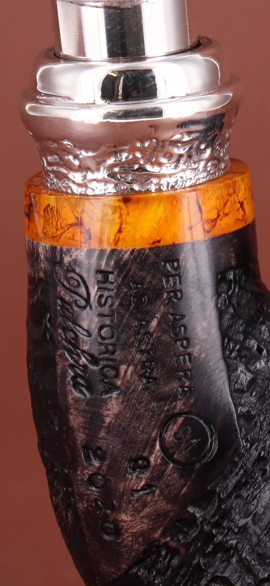 Ser Jacopo della Gemma 549 HISTORICA 2020 81 R1 PULCHRA, finissaggio rusticato marrone, shape stand up author con vera in argento, bocchino in metacrilato granigliato con vera in argento. Edizione Limitata Numerata. Con sacchetto originale in panno. Perfetta, nuova, mai fumata. Made in Italy