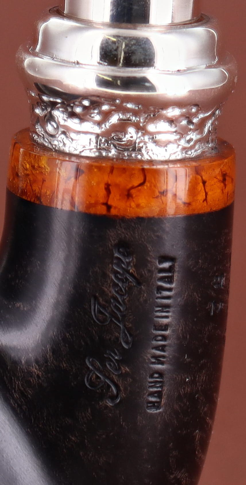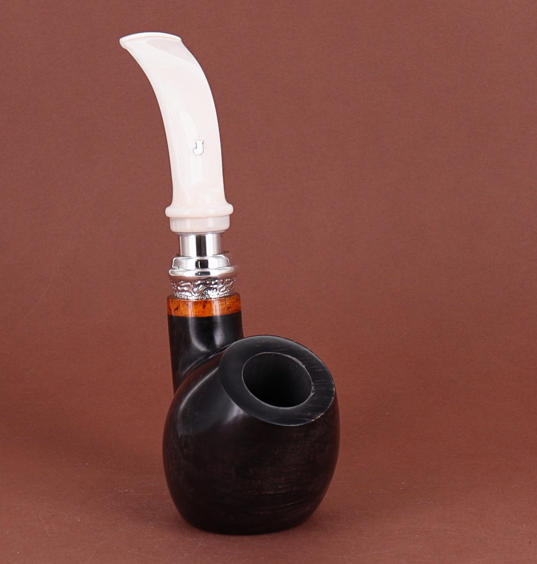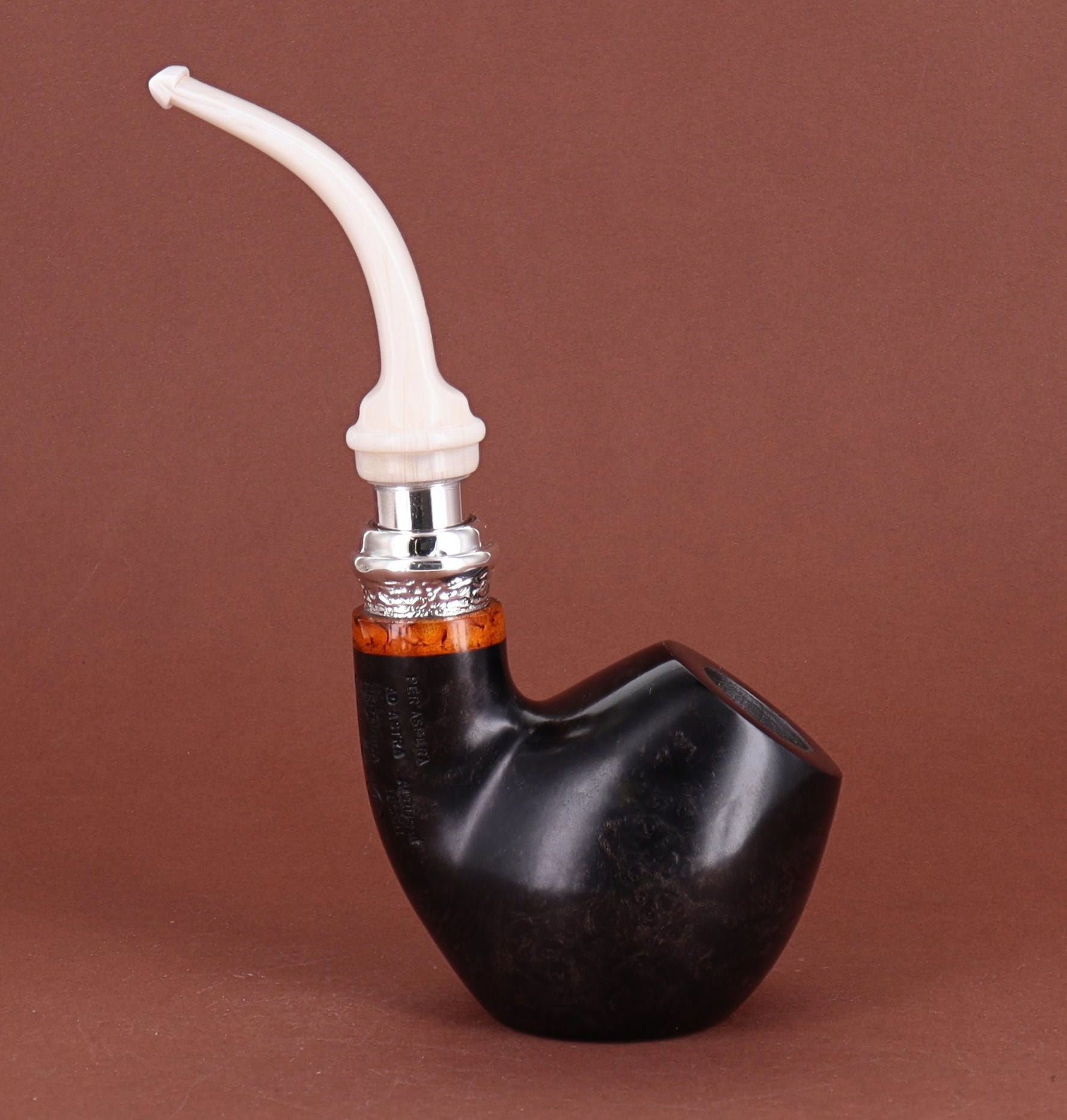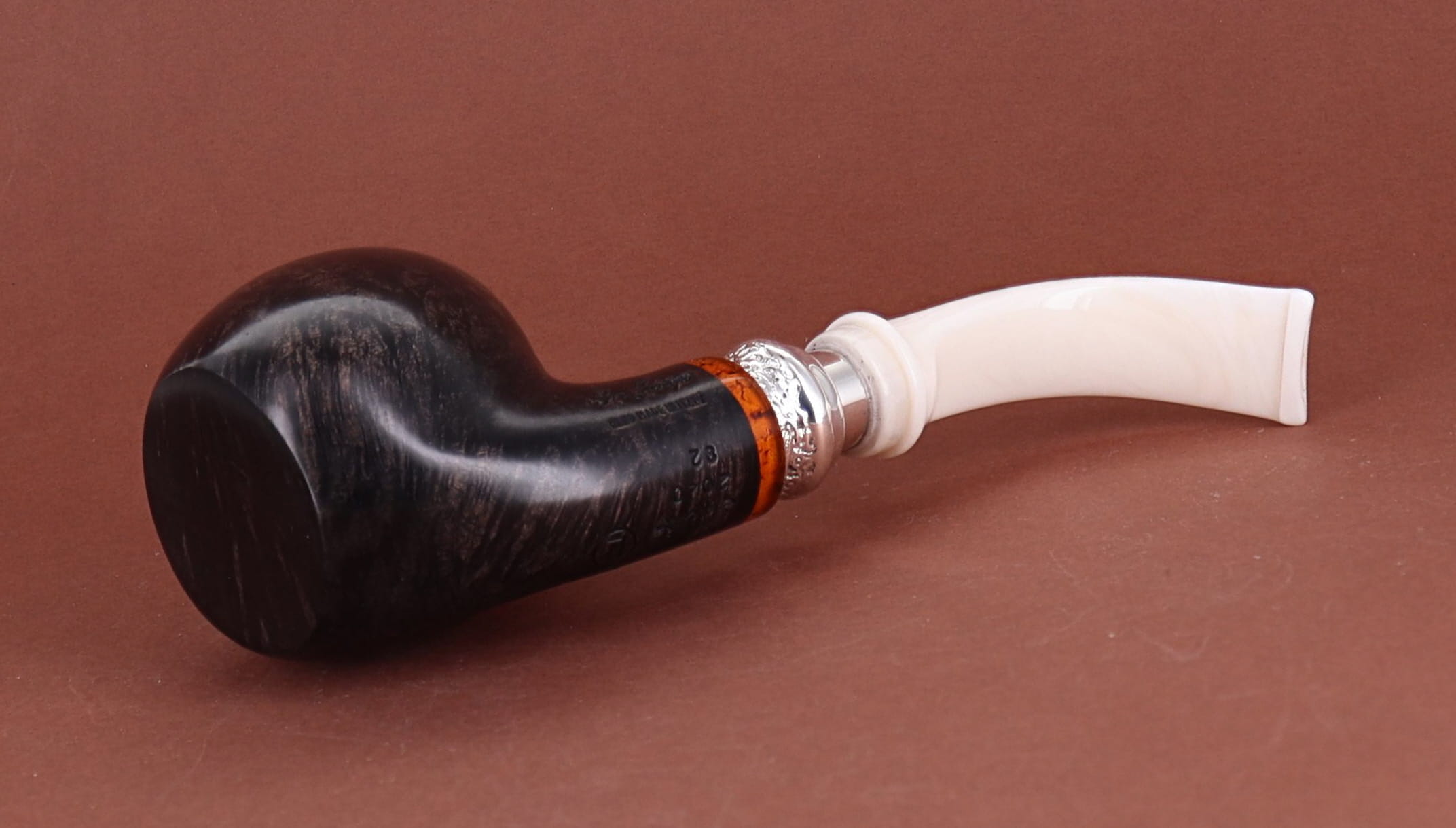 Pipa Ser Jacopo della Gemma 548 HISTORICA 2020 82 L1 PULCHRA, finissaggio liscio marrone, shape stand up author con vera in argento, bocchino in metacrilato con vera in argento. Con scatola e sacchetto originale in panno. Perfetta, nuova, mai fumata. Made in Pesaro, Italy.