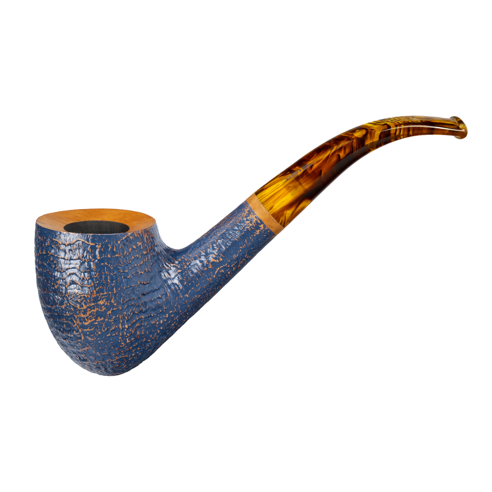 Un'accurata sabbiatura crea una superficie a rilievo che garantisce un'esperienza di fumo piacevolmente fresca. Le venature del legno, rivelate a mano, conferiscono a ogni pipa un carattere unico.