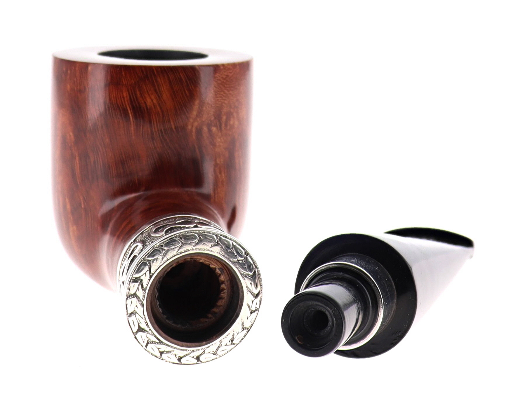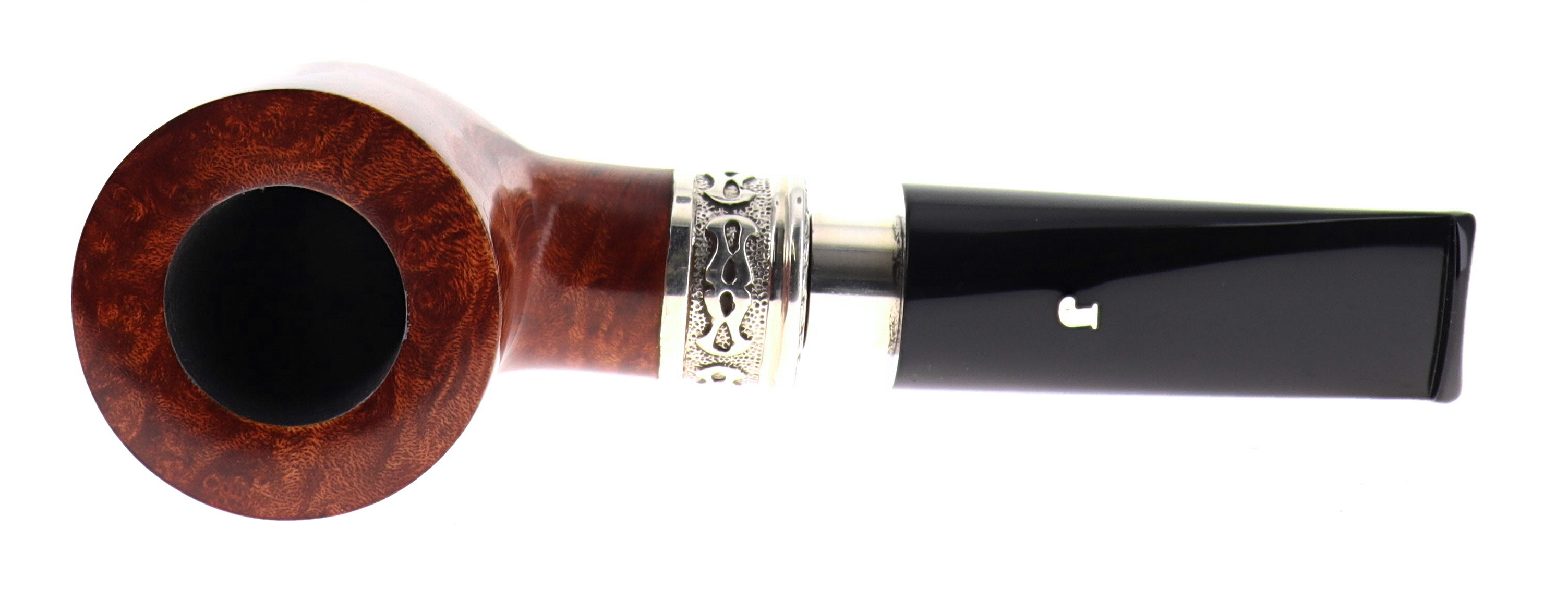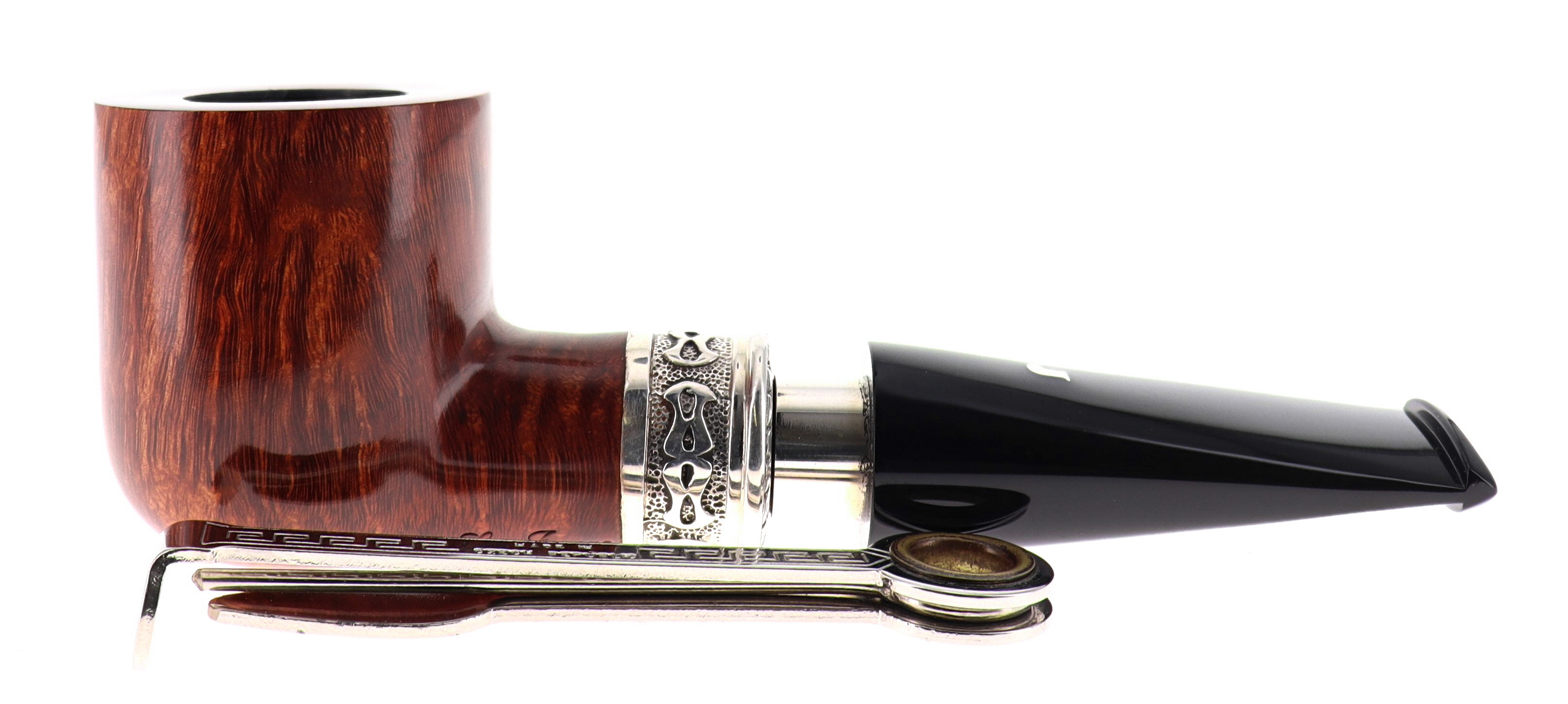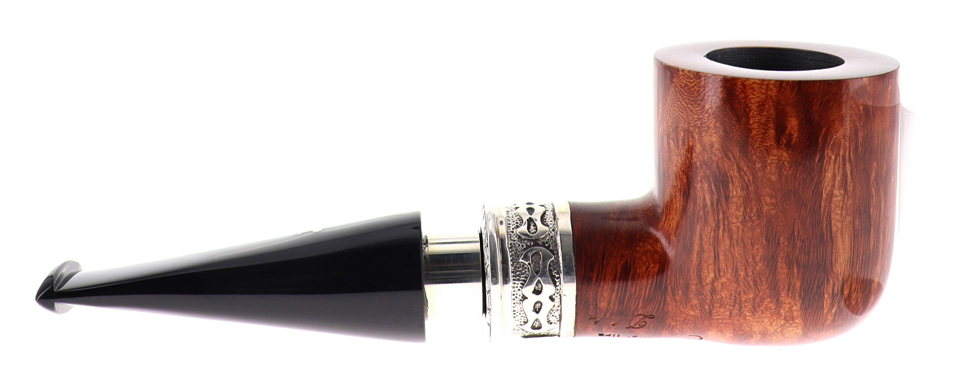 Pipa Ser Jacopo della Gemma 557 LA FUMA FINCHE TIRA C DELECTA, finissaggio liscio marrone, shape billiard con vera in argento, bocchino in metacrilato con vera in argento. Con scatola e sacchetto originale in panno. Perfetta, nuova, mai fumata. Made in Pesaro, Italy.
