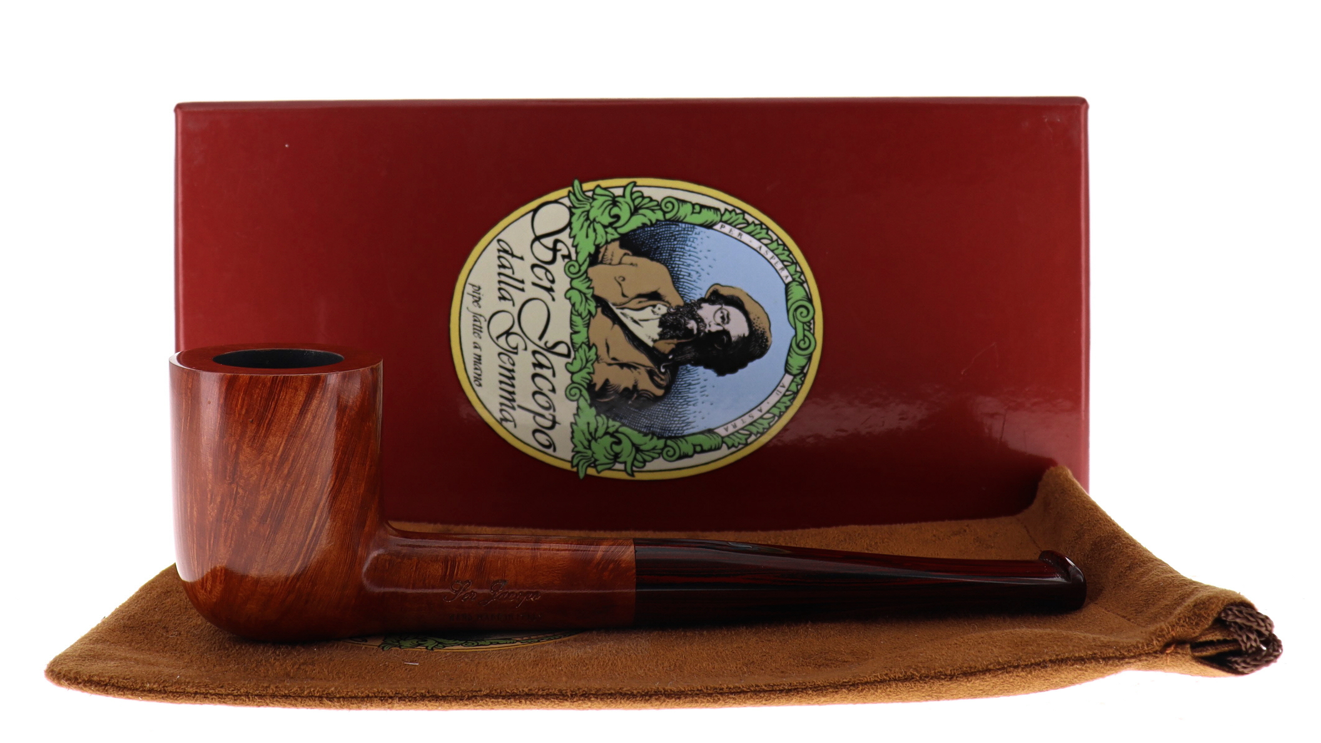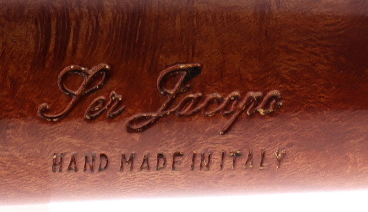 Pipa Ser Jacopo della Gemma 562 LA FUMA FINCHE TIRA A, finissaggio liscio, shape stand billiard, bocchino in cumberland. Con scatola e sacchetto originale in panno. Perfetta, nuova, mai fumata. Made in Pesaro, Italy.