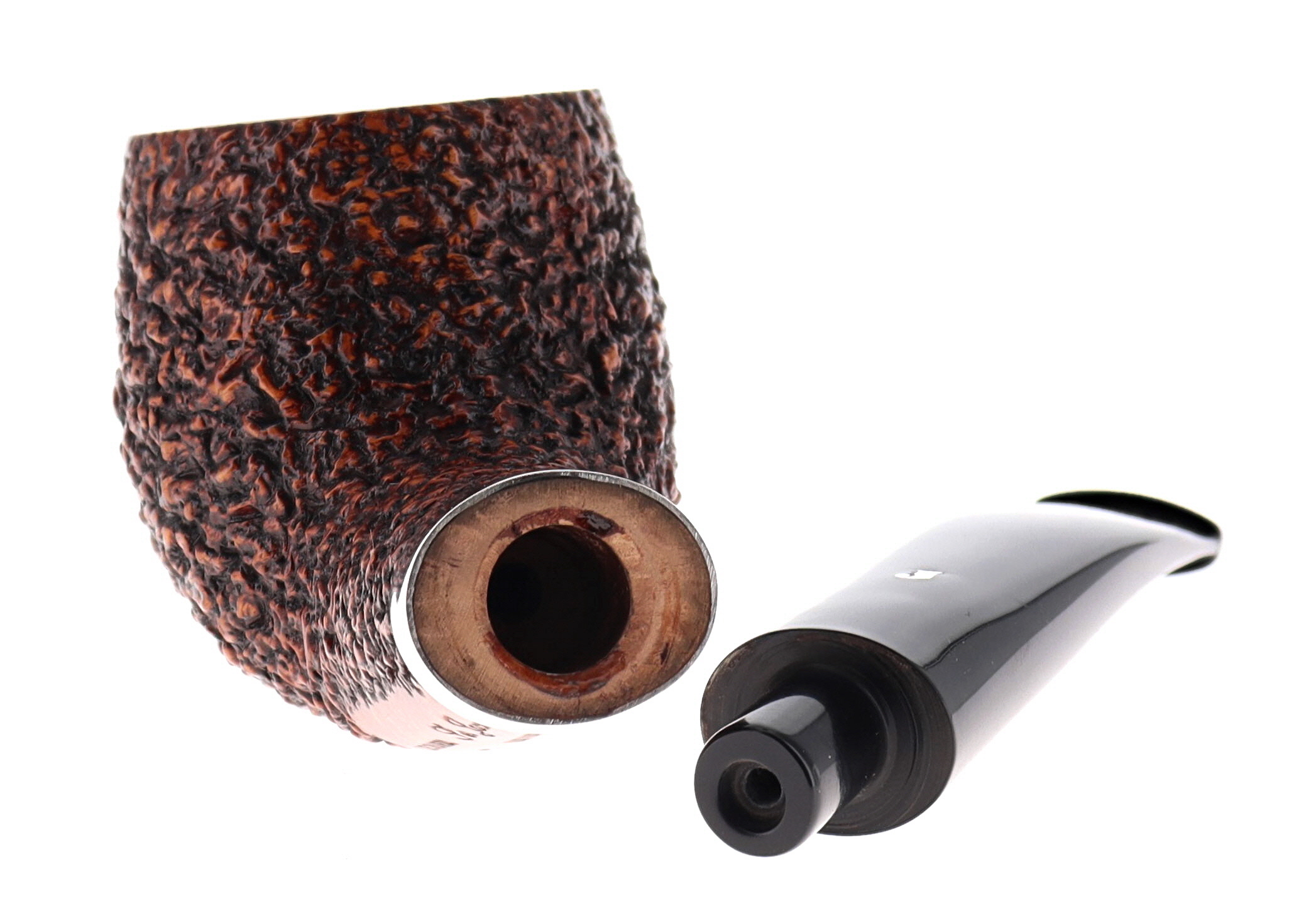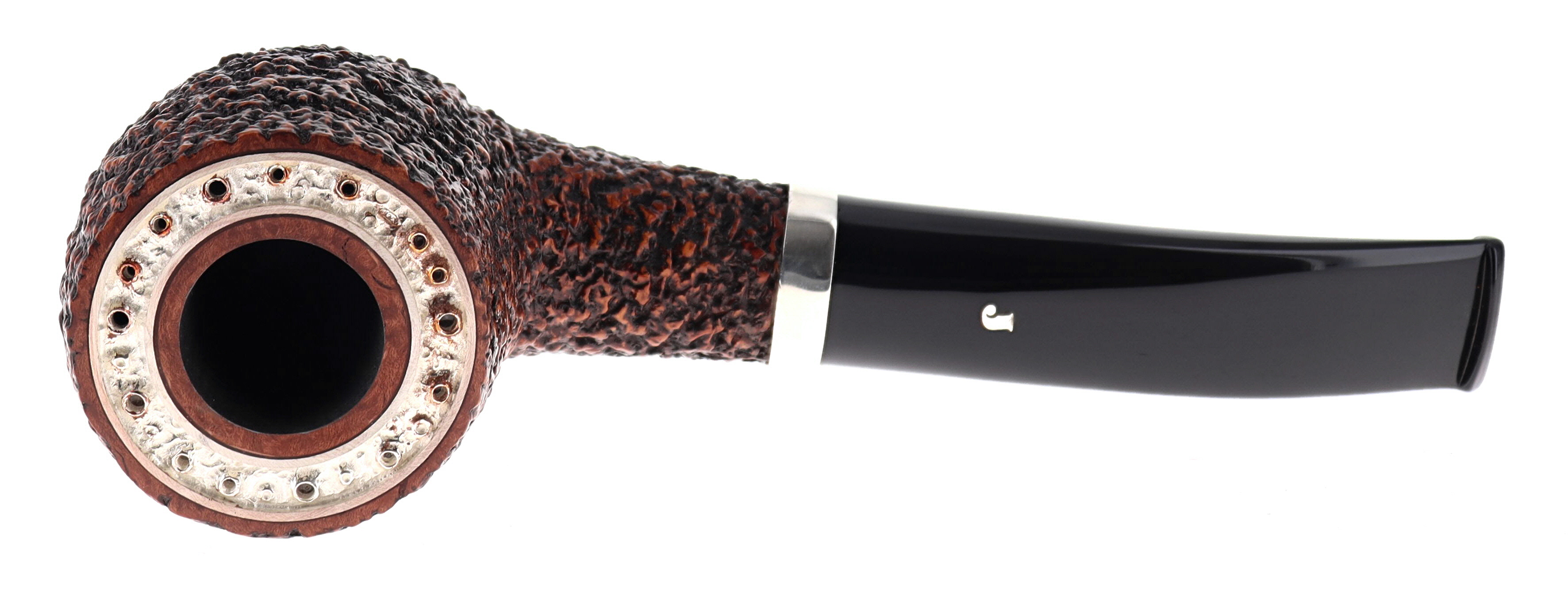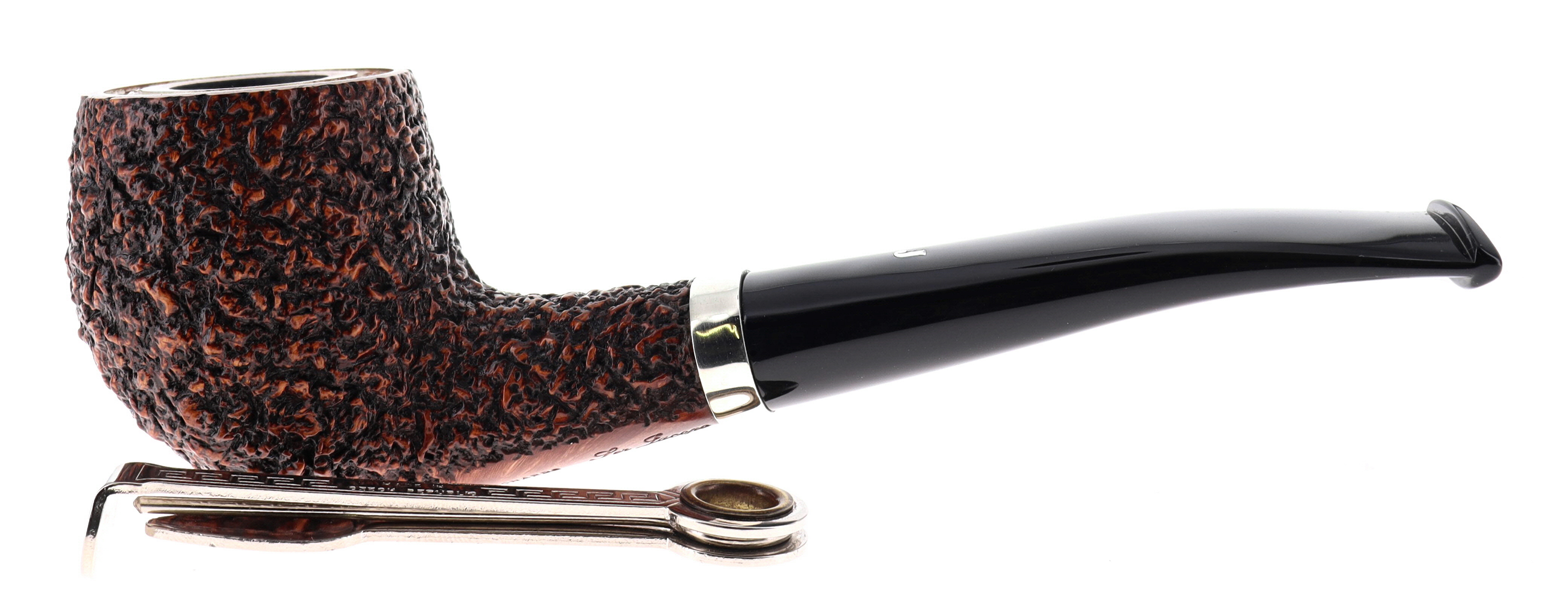 Pipa Ser Jacopo della Gemma 555 R1 E LEONARDO, finissaggio rusticato marrone, shape apple semicurva con vera in argento, bocchino in metacrilato. Con scatola e sacchetto originale in panno. Perfetta, nuova, mai fumata. Made in Pesaro, Italy.