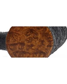 Non vi può essere dunque reale perfezione tanto estrinseca quanto intrinseca se la materia prima non è ottima. Di ciocchi di radica ve ne sono di diversi tipi e specie, ma solo un prodotto di ottima qualità può contemperare entrambi gli aspetti sopra descritti. Prevalentemente utilizzo radiche del nord Italia con rigidi criteri di stagionatura che vanno come minimo dai due ai tre anni. Ultimamente, inoltre, mi sono appassionato anche alla lavorazione di legni alternativi estremamente interessanti per le loro potenzialità aromatiche, quali l’ulivo e il corbezzolo, con i quali costruisco pipe tanto lisce quanto sabbiate e rusticate"
