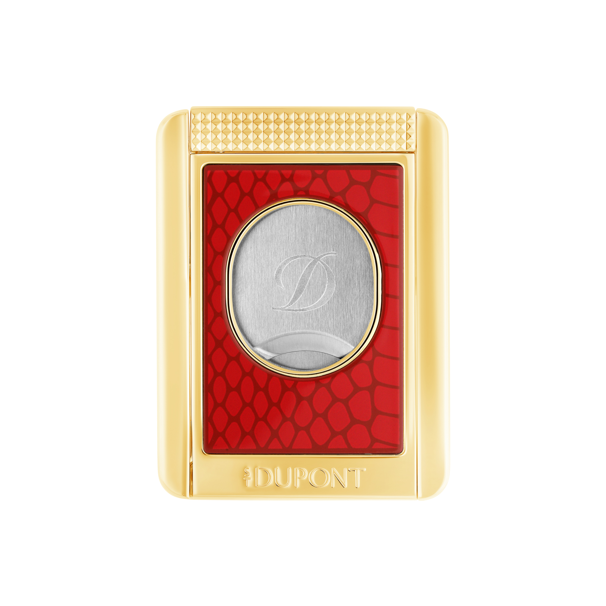 Il motivo a squame di serpente a cui si sono ispirati, su base laccata rossa, è un rifrimento all'anno in corso del calendario cinese, ch conferisce all'oggetto una profondità e all medesimo tempo un effetto tridimensionale che lo valorizza allo sguardo attennto del'appassionato di prodotti Dupont.
