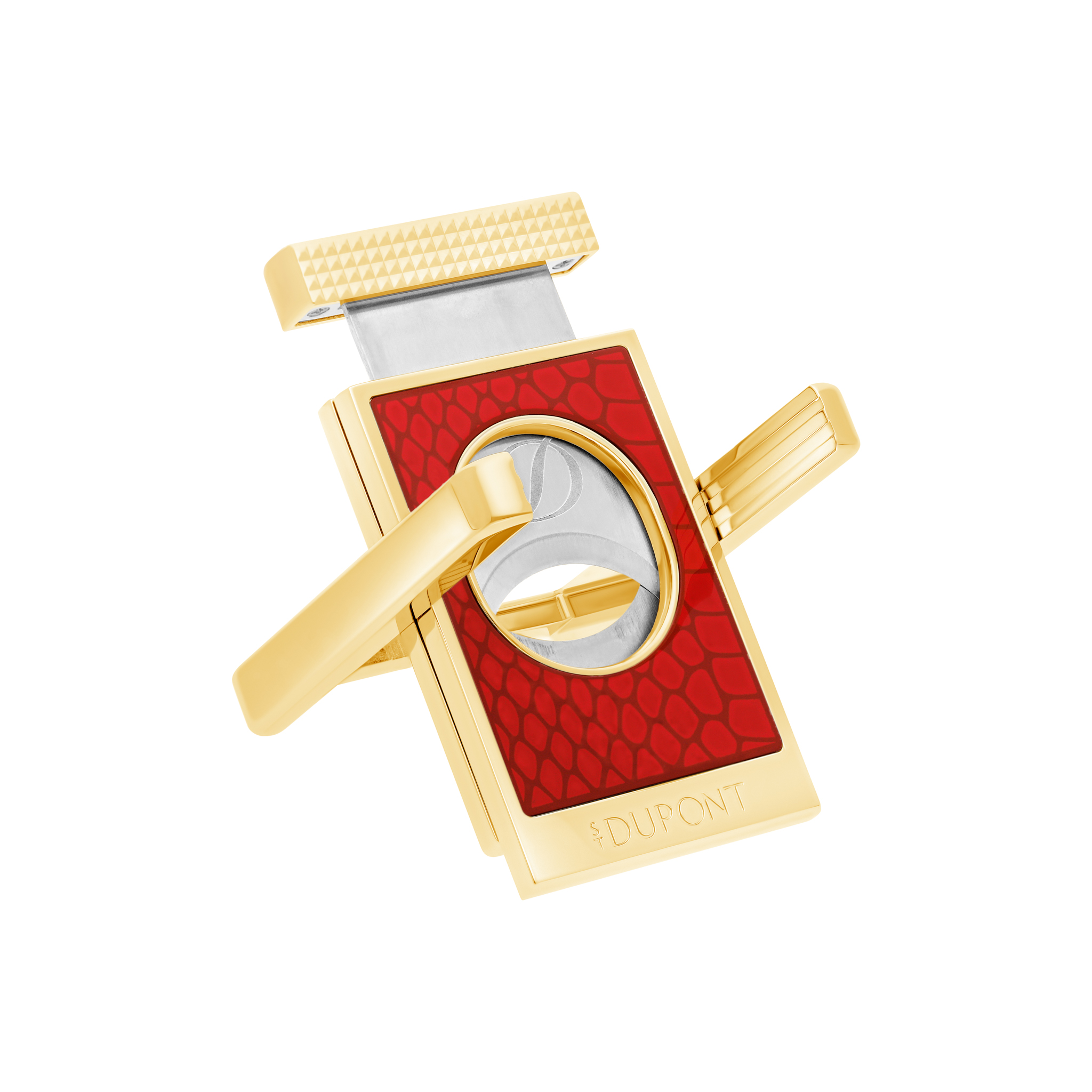 Taglia sigaro in metallo con motivo Snake rosso, finitura dorata.