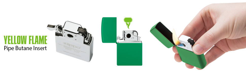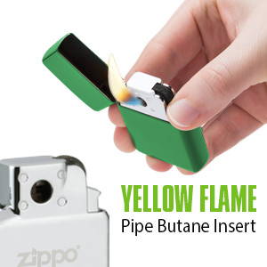 Personalizza ulteriormente il tuo accendino Zippo scegliendo il tipo di fiamma. Combinando i vantaggi dell'inserto a butano Yellow Flame con l'esclusivo design a camino del nostro classico accendino a pipa, l'inserto a butano Yellow Flame è progettato per un'aspirazione ottimale della fiamma verso il basso, ideale per le occasioni in cui si desidera una fiamma inodore.